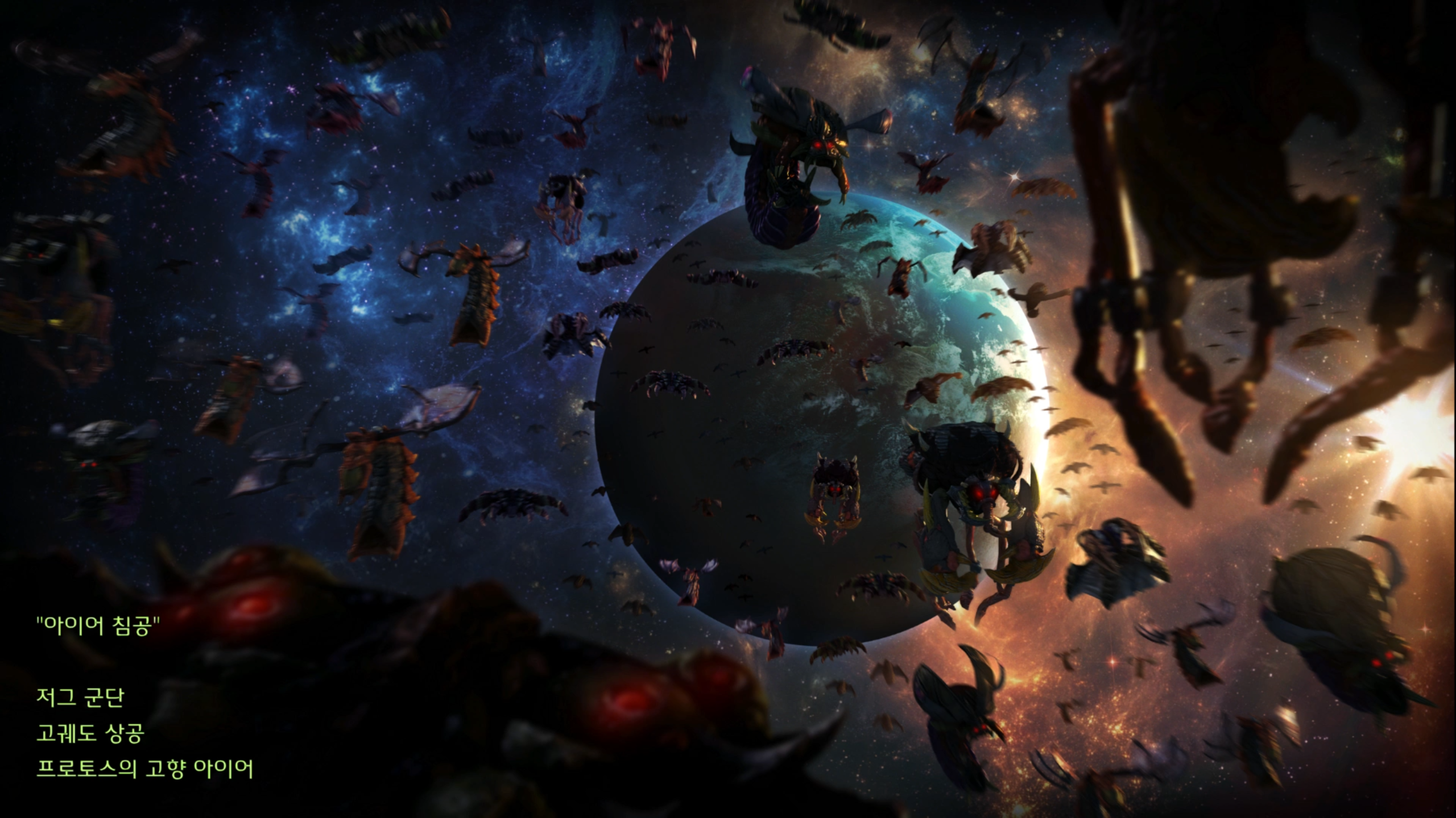 이번 미션은 프로토스의 고향 아이어 행성 상공에서 시작합니다.