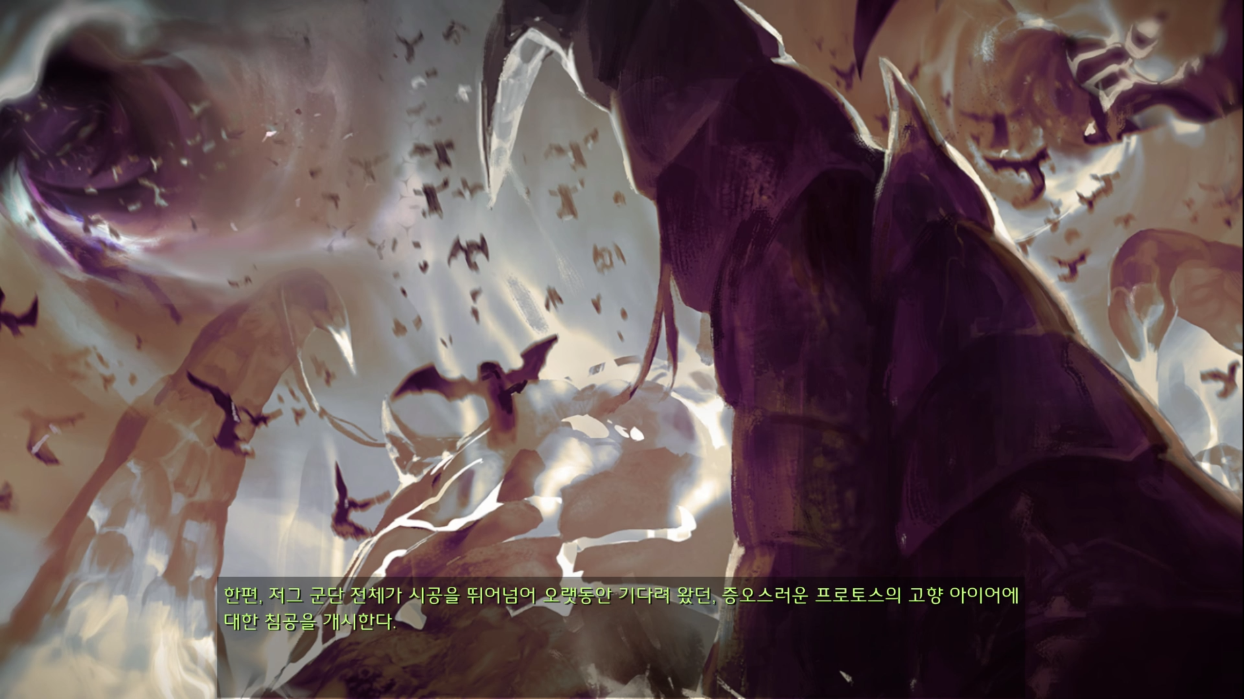 승리의 시간이라 함은 곧 프로토스의 전멸이라고 지금까지는 생각했었는데 아이어에서 가장 강하다고 알려진 종, 아마 프로토스를 얘기하는 것 같은데 이 종족의 흡수가 최종적인 목표라고 합니다.