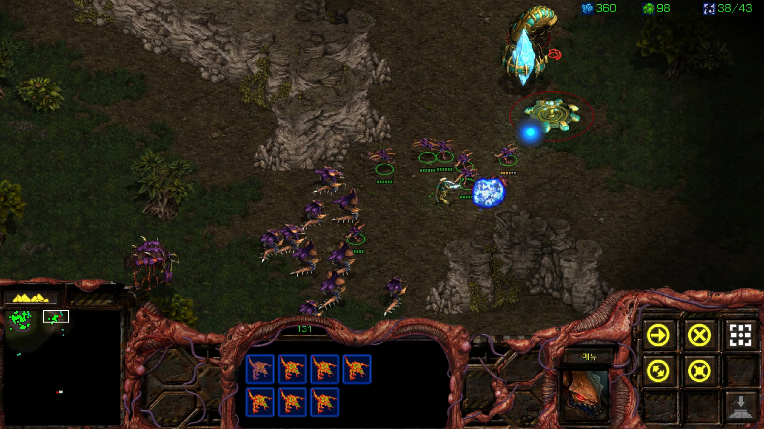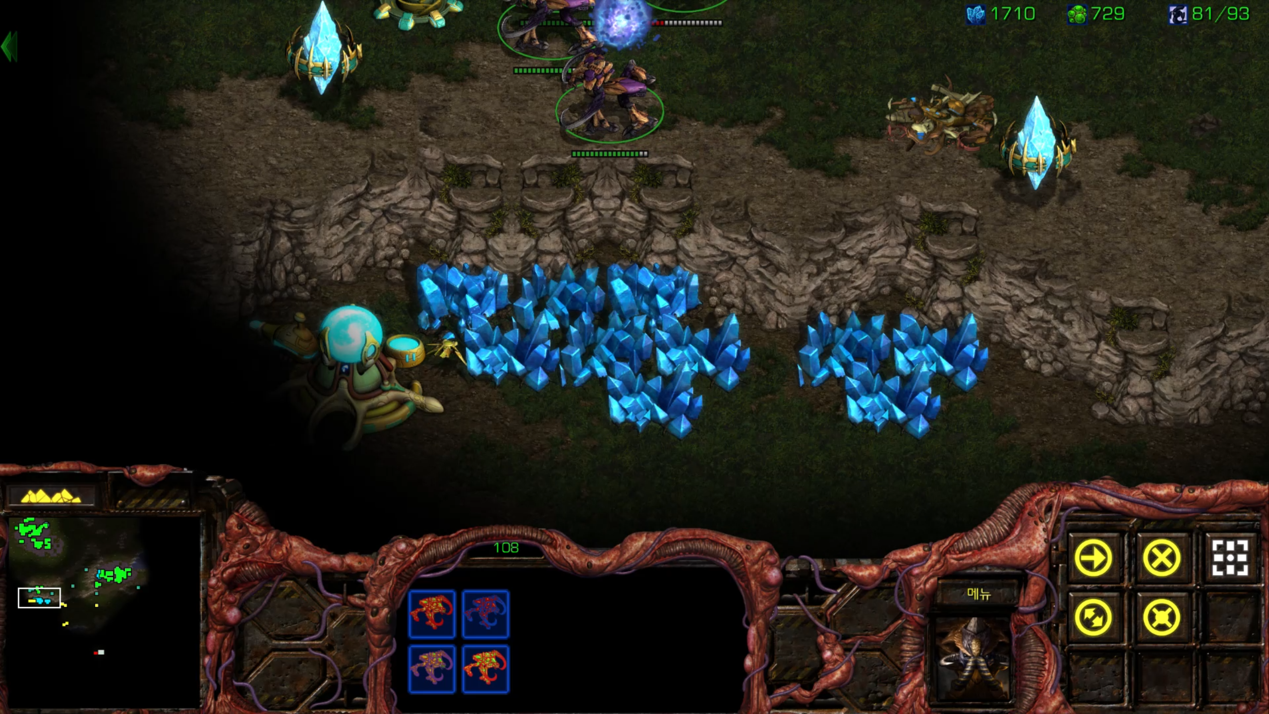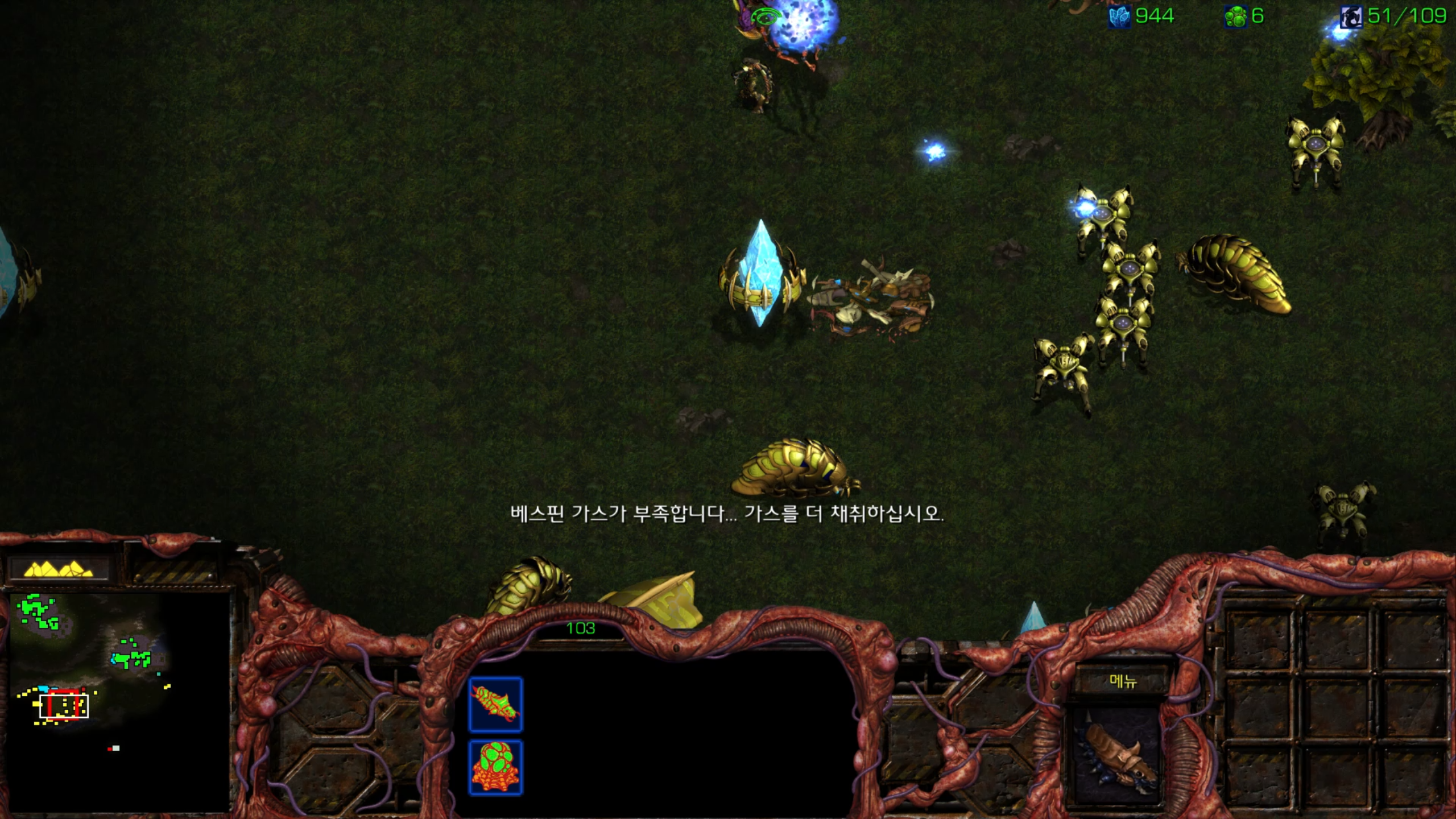 결국 전멸... 그래도 두 세번 정도 더 보내면 뚫을 것 같습니다. 후반부를 위해서라도 멀티 지역이 하나 정도는 더 필요할 것 같습니다.
