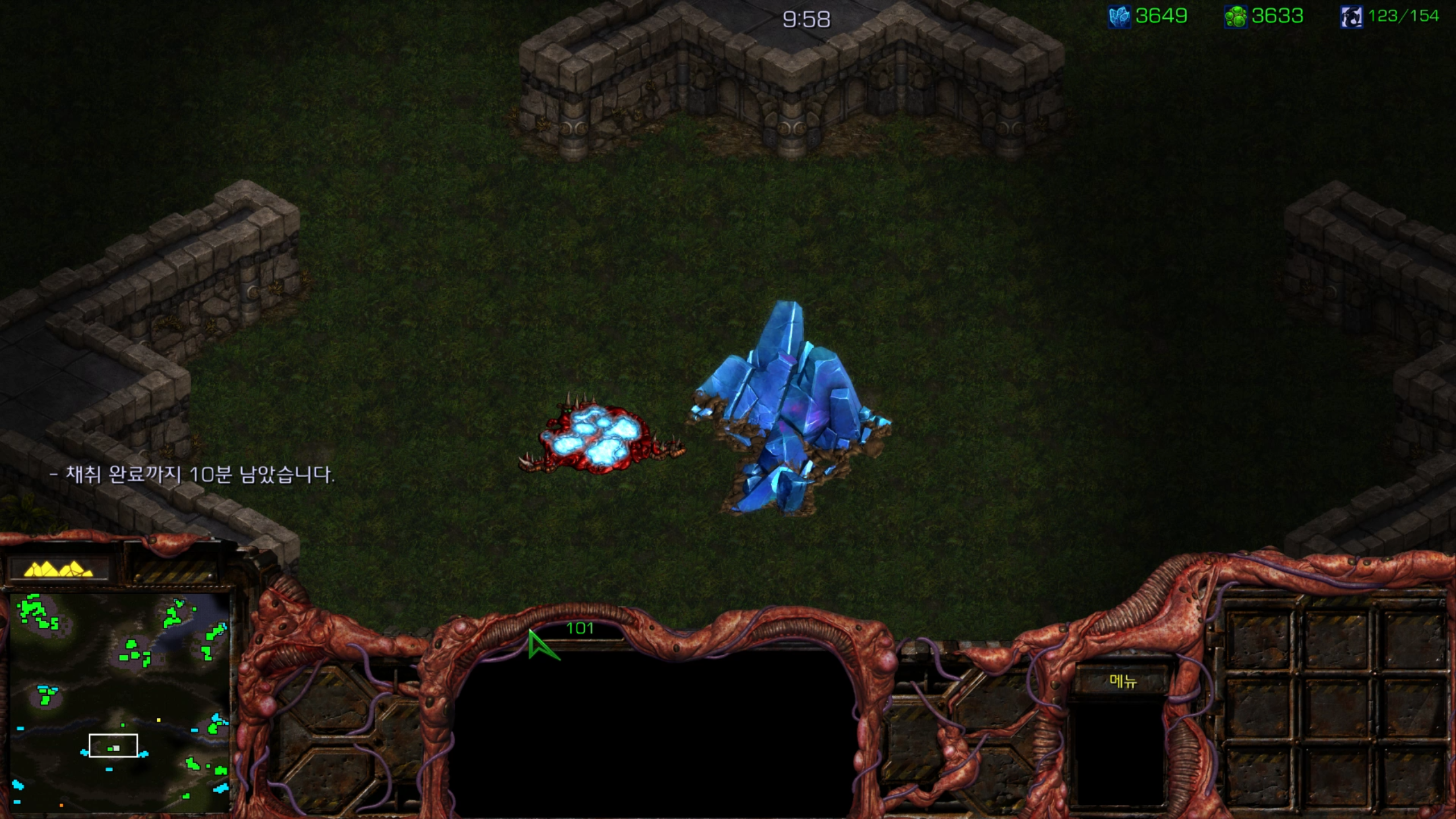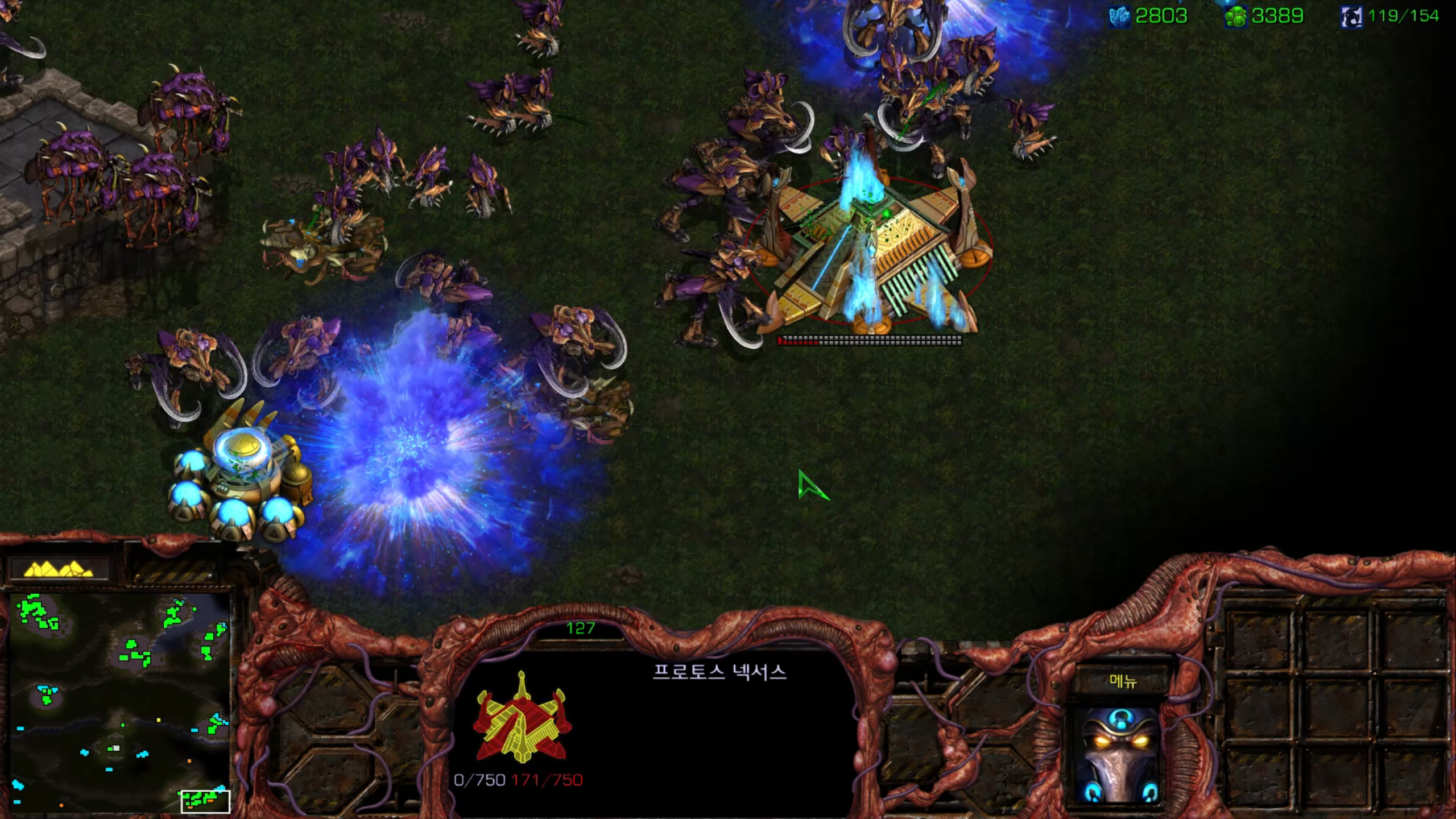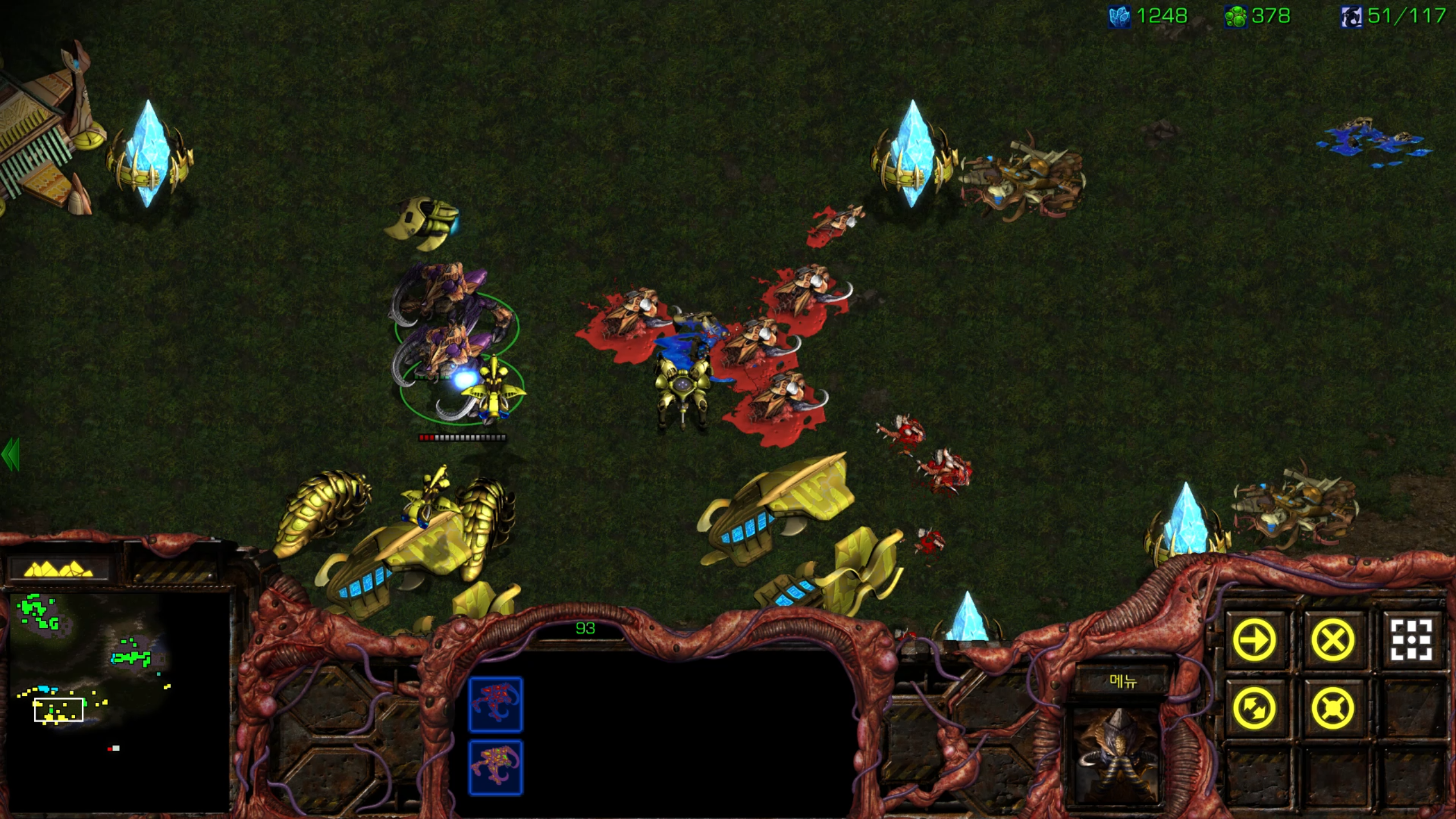 결국 전멸... 그래도 두 세번 정도 더 보내면 뚫을 것 같습니다. 후반부를 위해서라도 멀티 지역이 하나 정도는 더 필요할 것 같습니다.