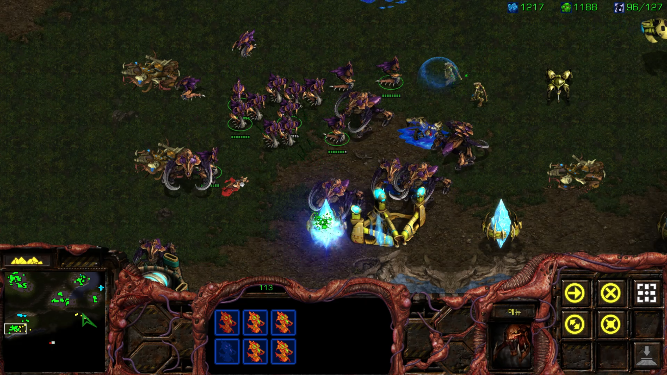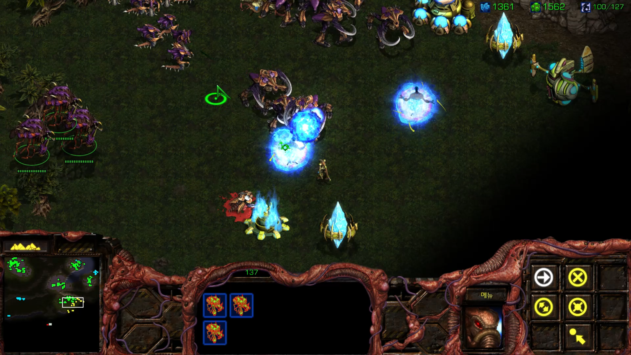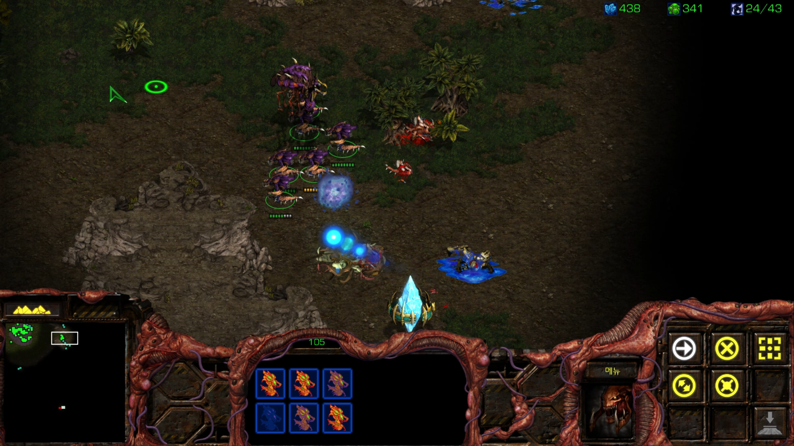 리버가 아직도 남아있네요. 저글링은 끔살 당했지만 울트라는 그래도 버텨줍니다.