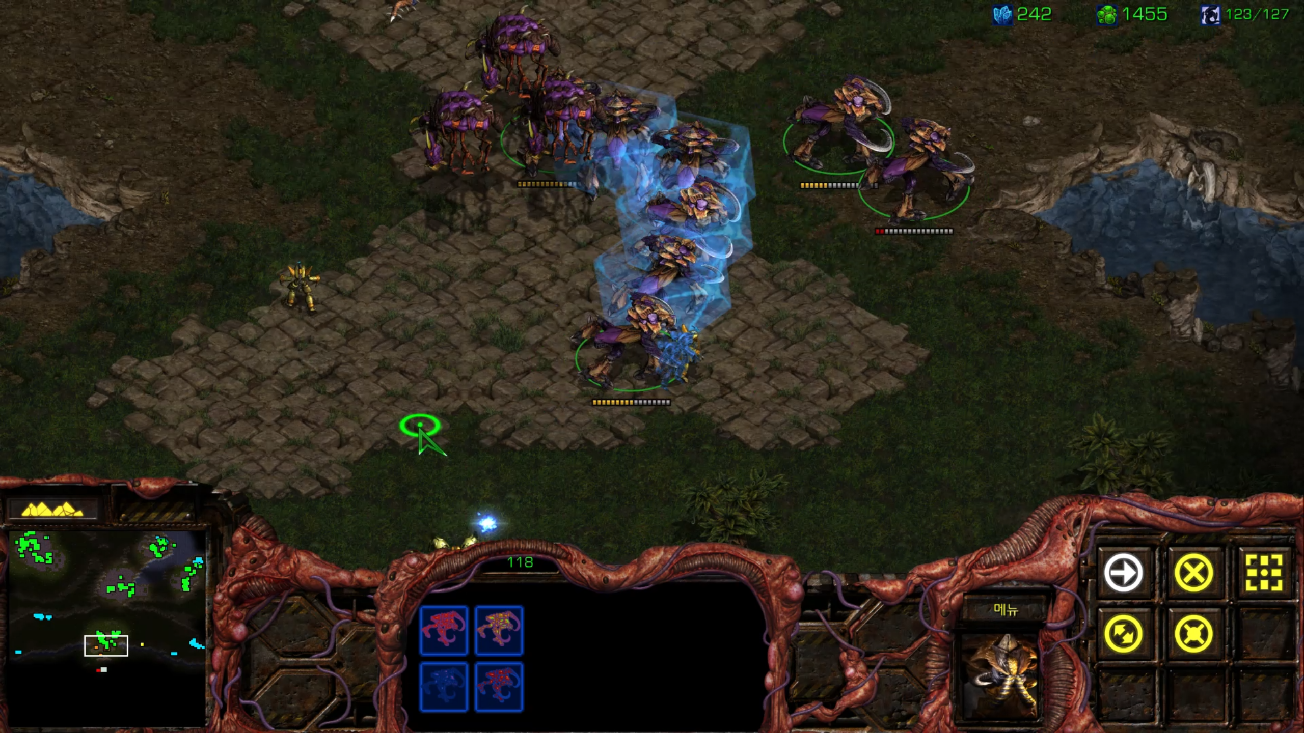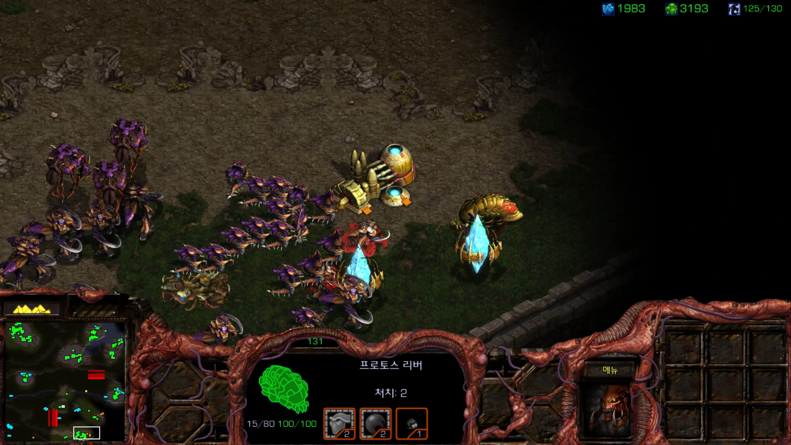 리버가 한 마리가 아니네요... 저글링이 순삭당합니다.