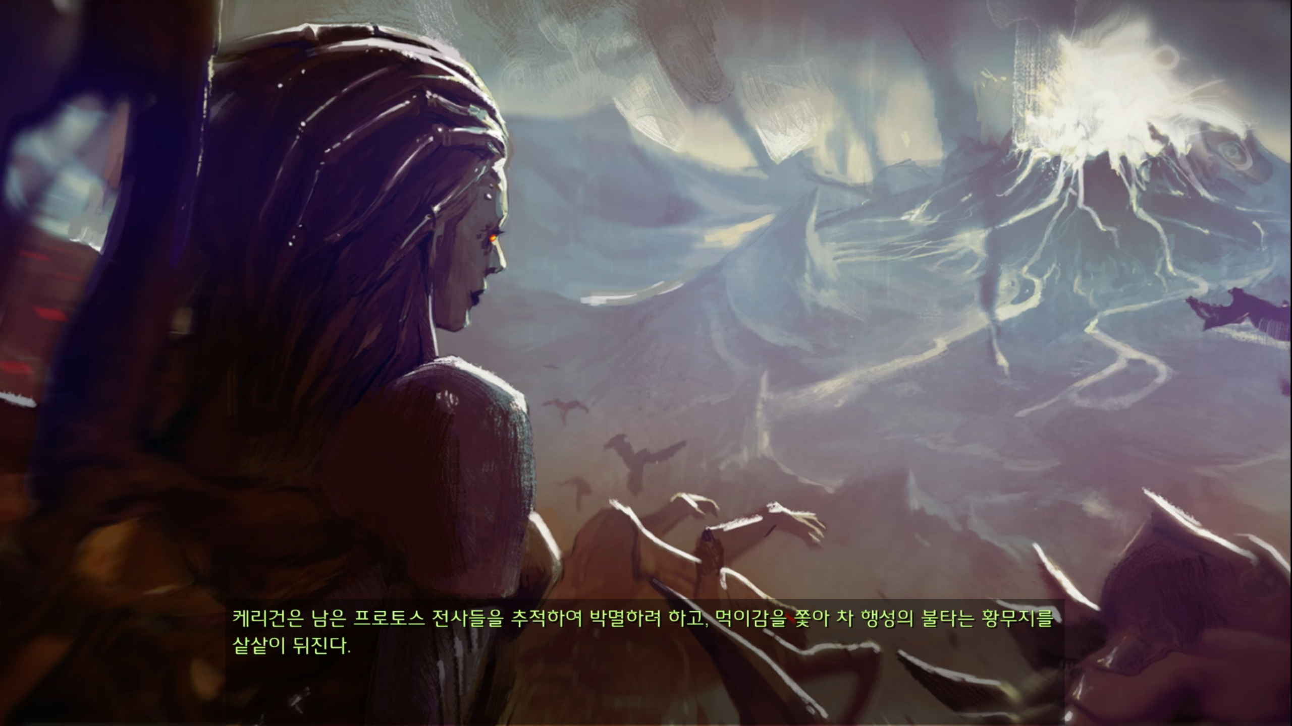캐리건은 프로토스 박멸을 위해 차 행성을 샅샅이 뒤지고 있습니다.