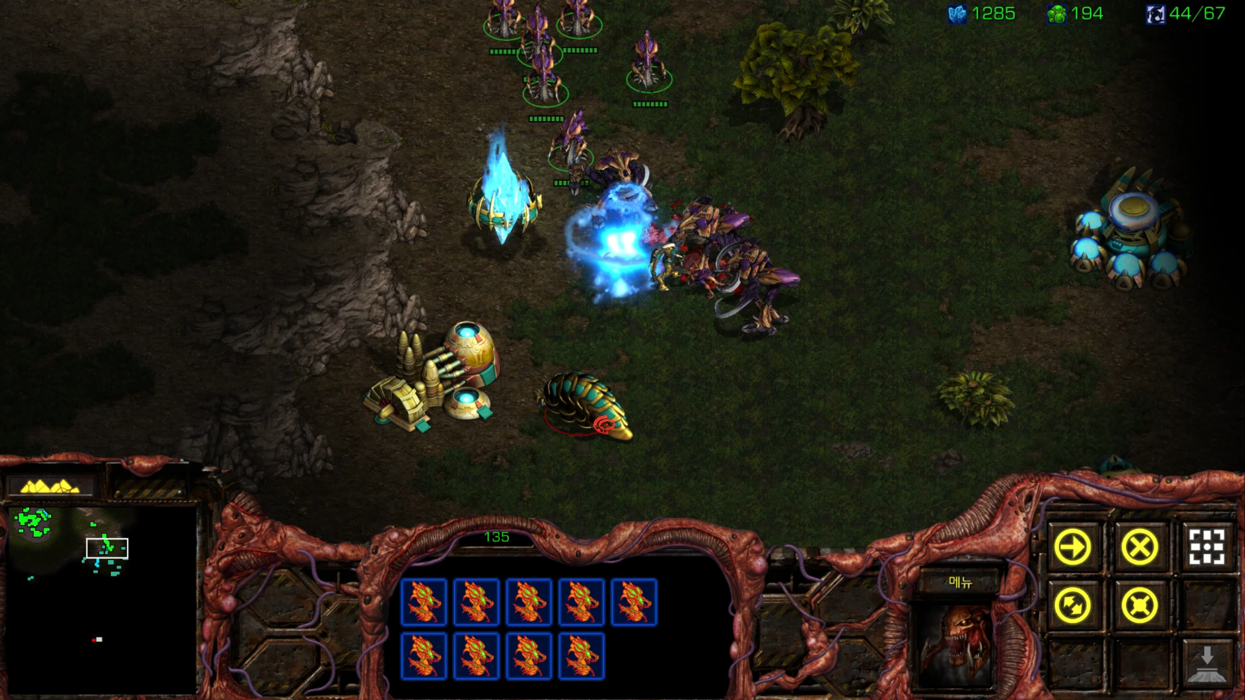 풀업이 된 상태이기에 질럿 드라군은 사실 무섭진 않습니다만 뒤에 있는 하이템플러는 굉장히 위험합니다.