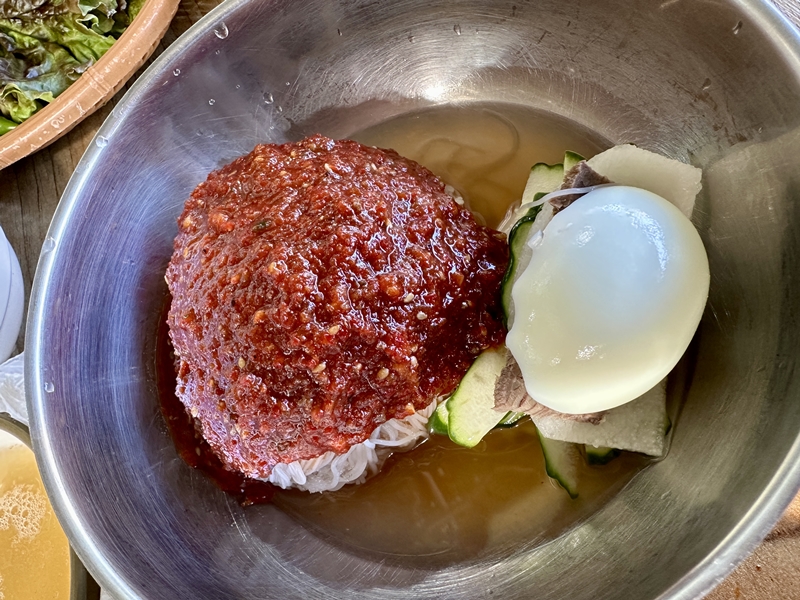냉면은 진짜 너무 배불러서 맛만 살짝 봤는데, 새콤달콤하고 간도 적당해서 맛있더라고요.