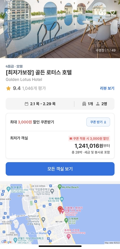 여기서 세이브된 숙소 가격을 호이안에 몰빵, 호이안에서는 호캉스 느낌으로 보내면 될 것 같아요.