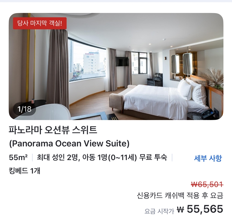 그리고 할인 혜택에 쿠폰 먹이고 하면 아고다 보다 저렴한 경우도 심심치 않게 나오는 만큼 가격 경쟁력도 좋아요.