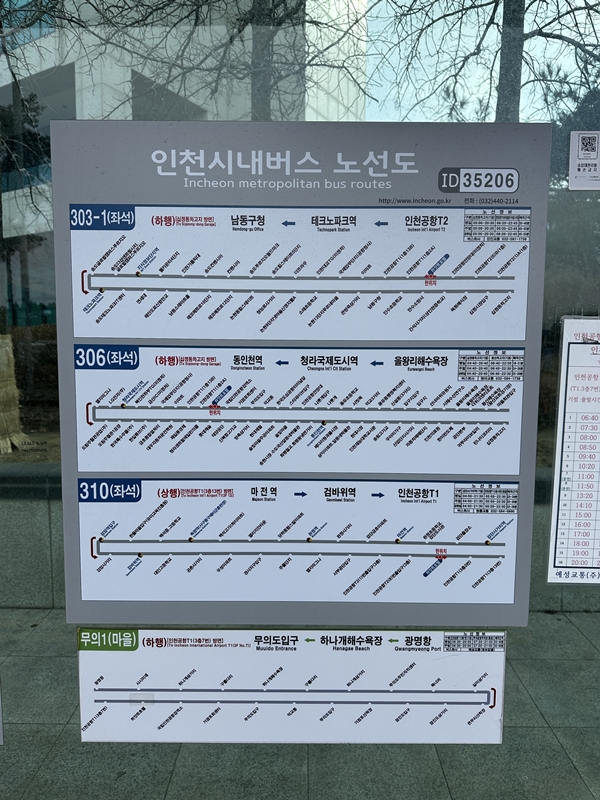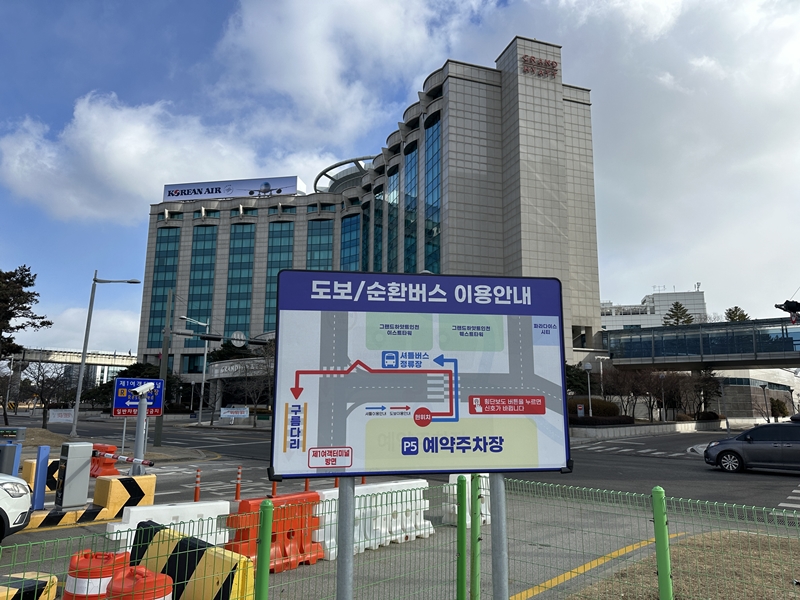 입구 바로 맞은편, 횡단보도만 건너면 공항 셔틀버스 정류소가 있습니다.