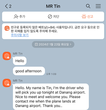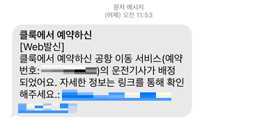 전날 클룩에서 기사가 배정되었다는 연락을 받았습니다.