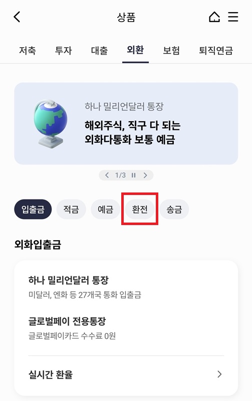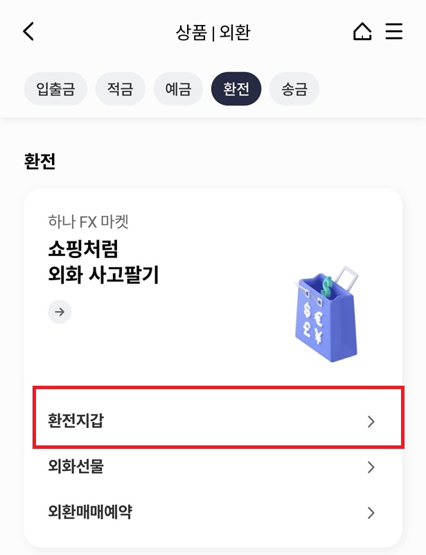 - 환전 카테고리에서 환전지갑