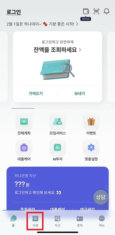 - 하나은행 어플 실행