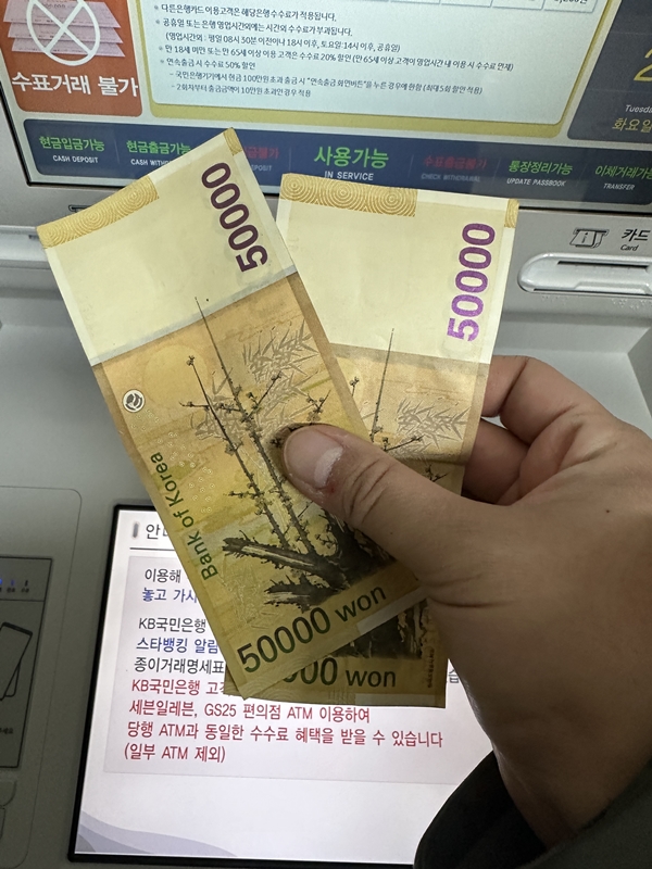 다음으로 한결 가벼워진 몸으로 현금을 뽑았습니다.