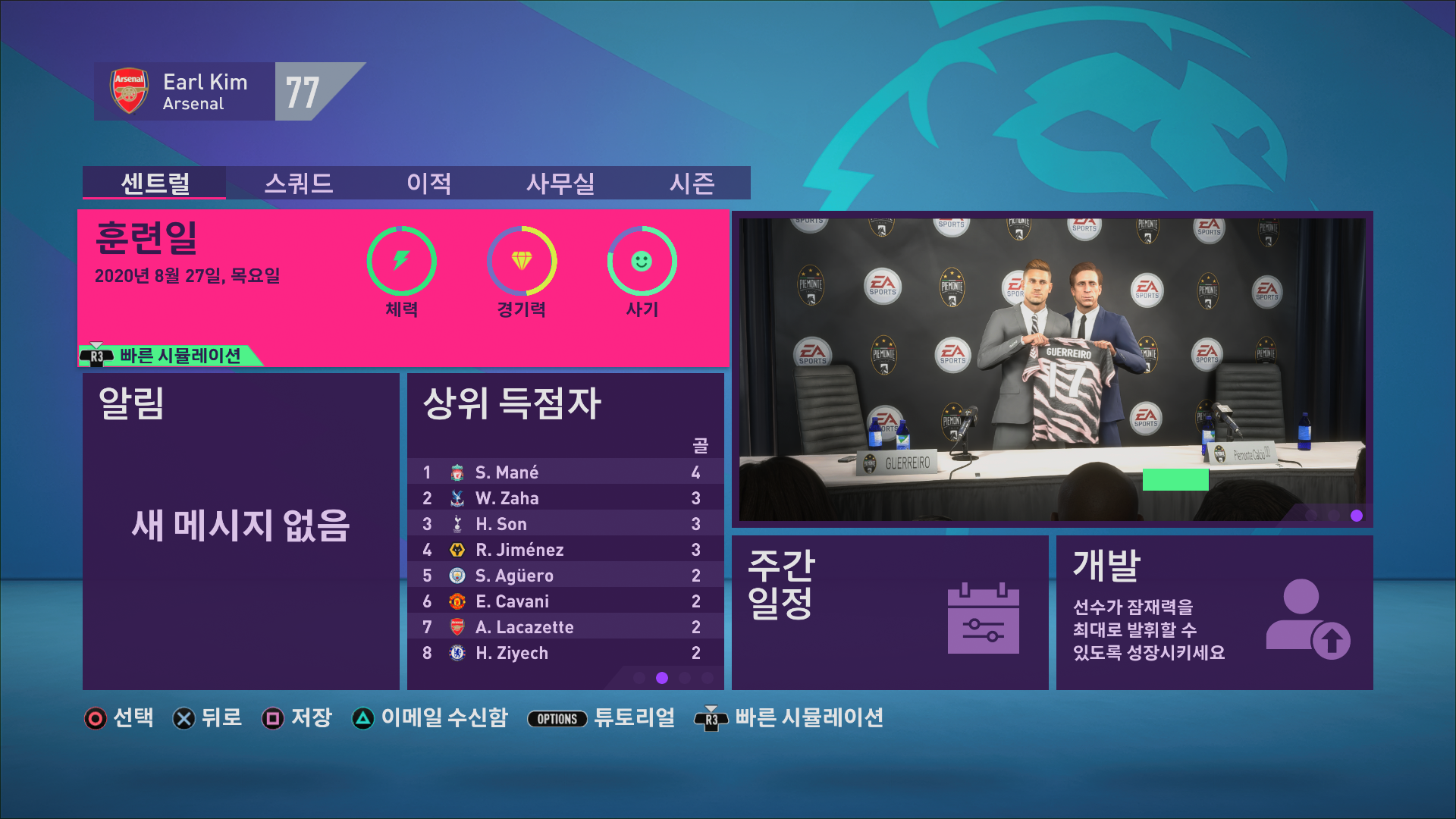 | [PS4] 피파21 커리어 감독 모드 - 시작 전 세팅 (0) | 2020.10.14 |