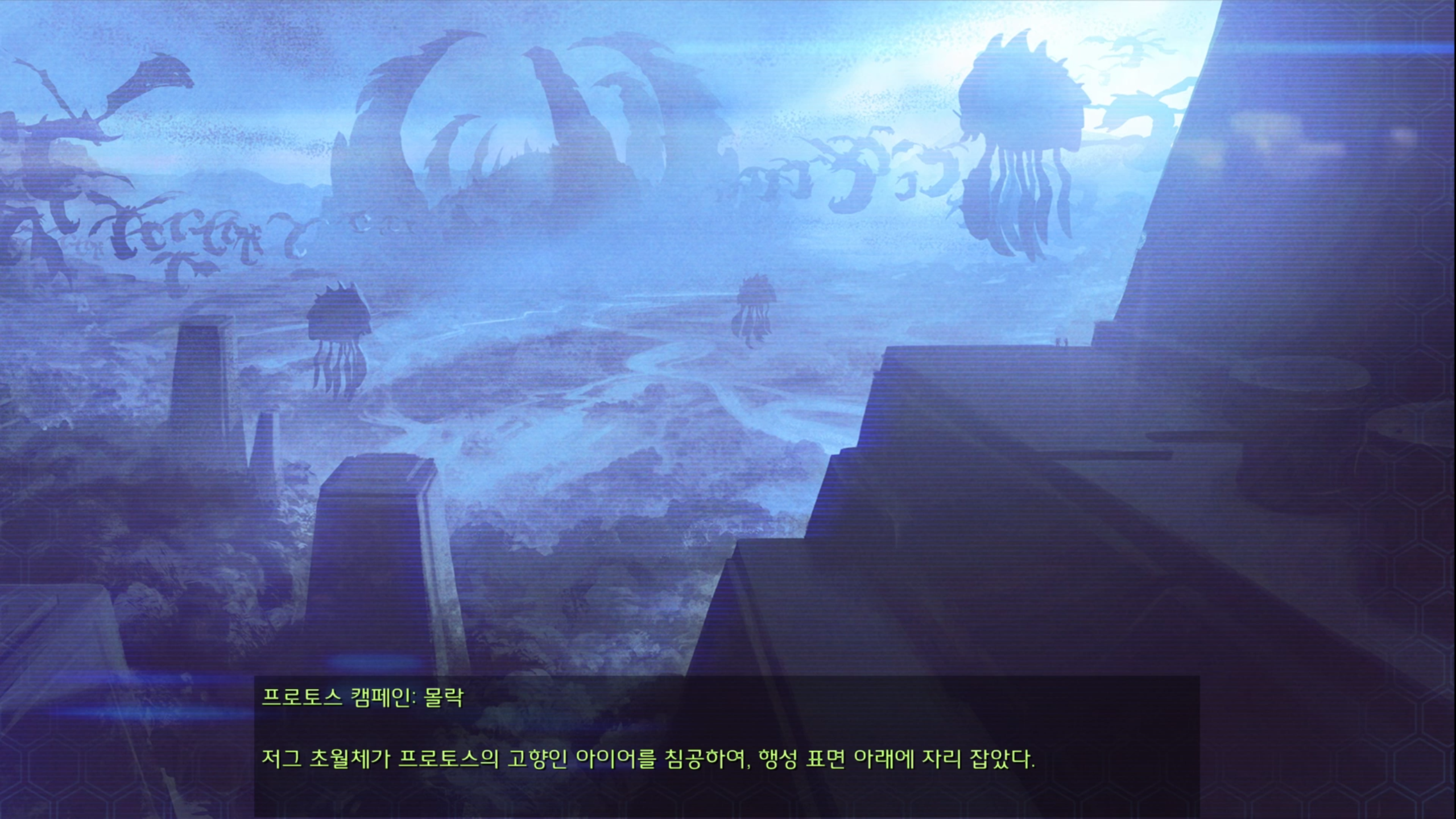 저그 침공 이틀 후 플레이어는 새로운 프로토스의 집행관이 되어 에피소드를 시작합니다. 지역은 아이어로 추정되네요.