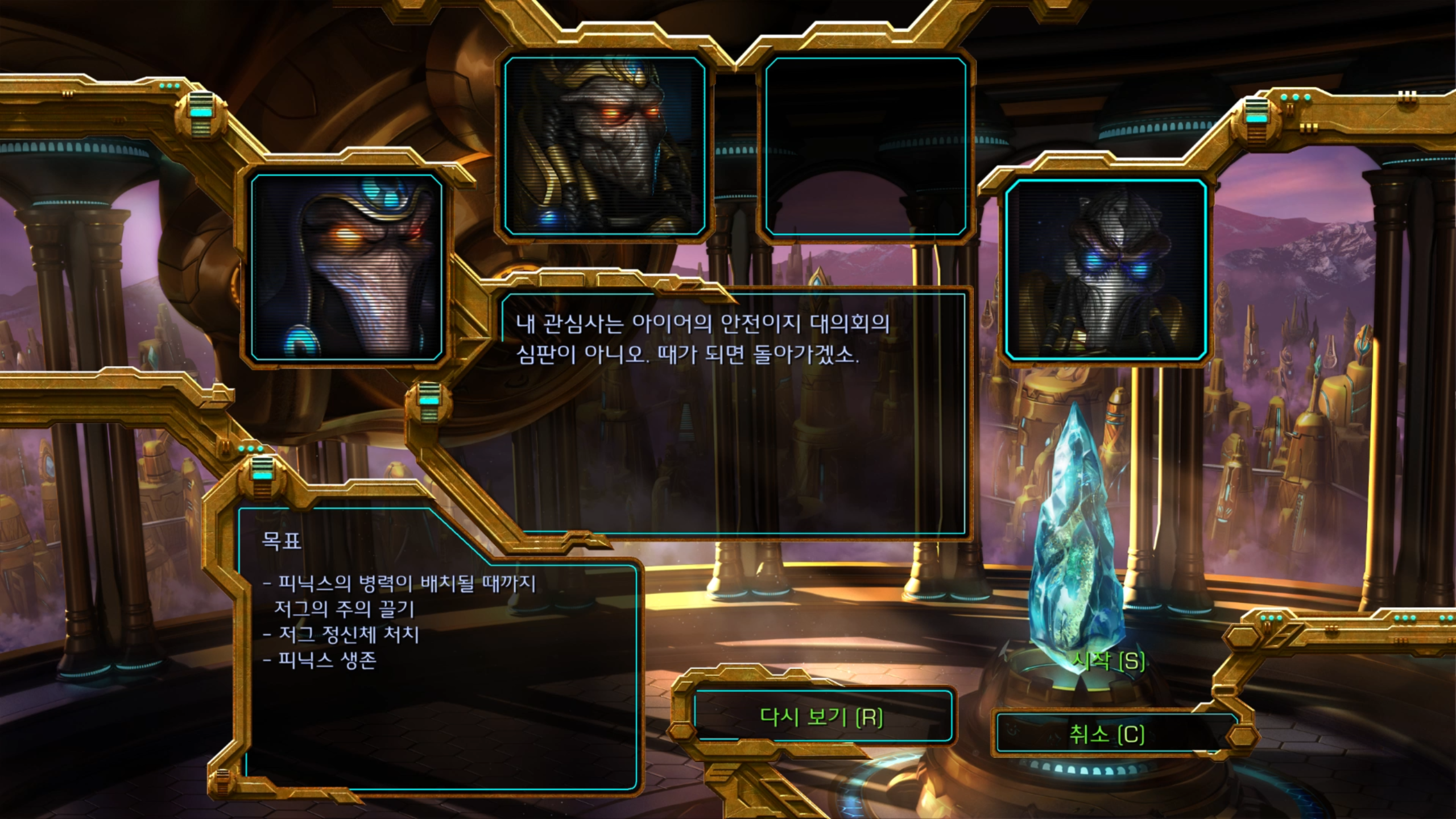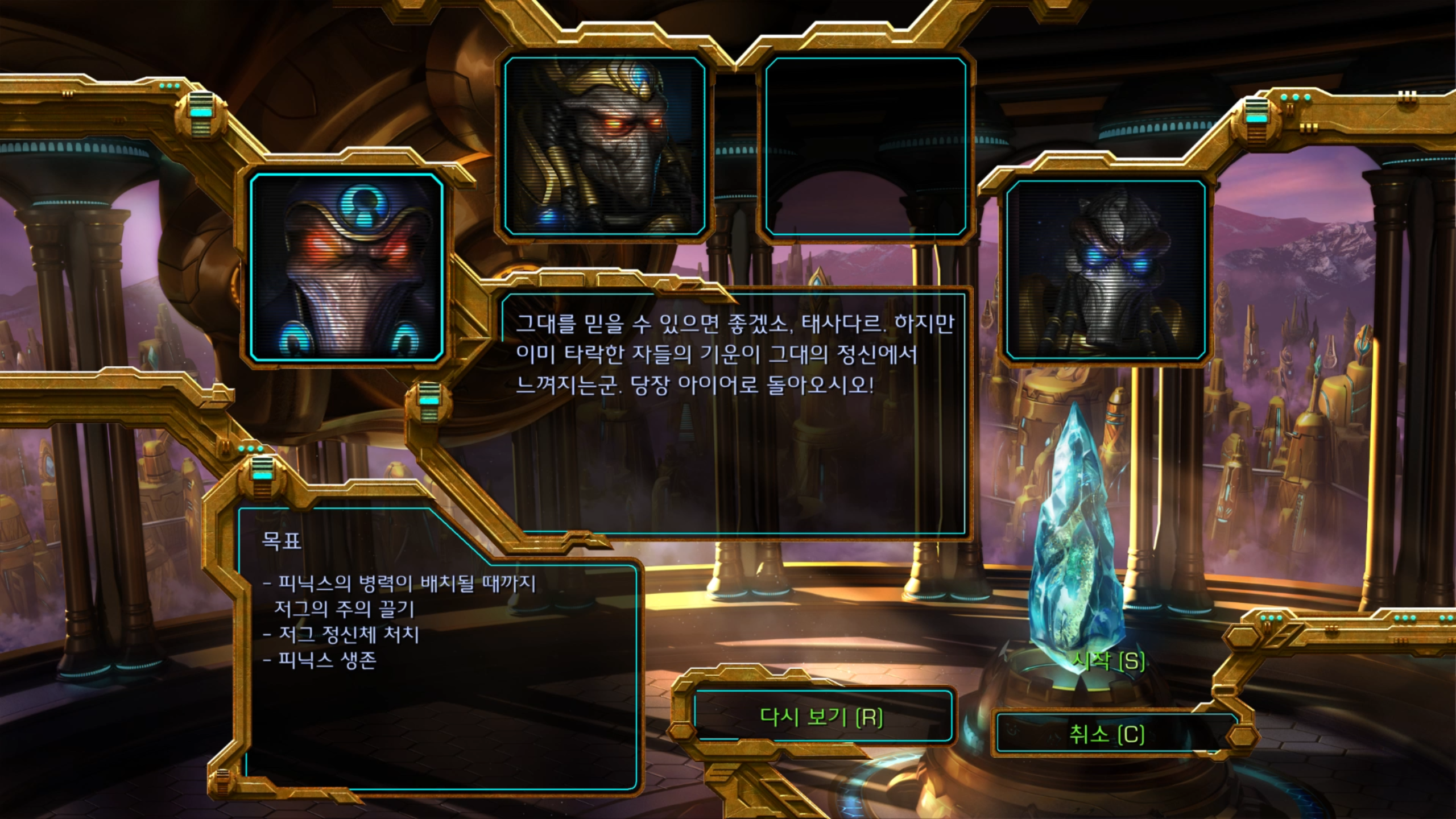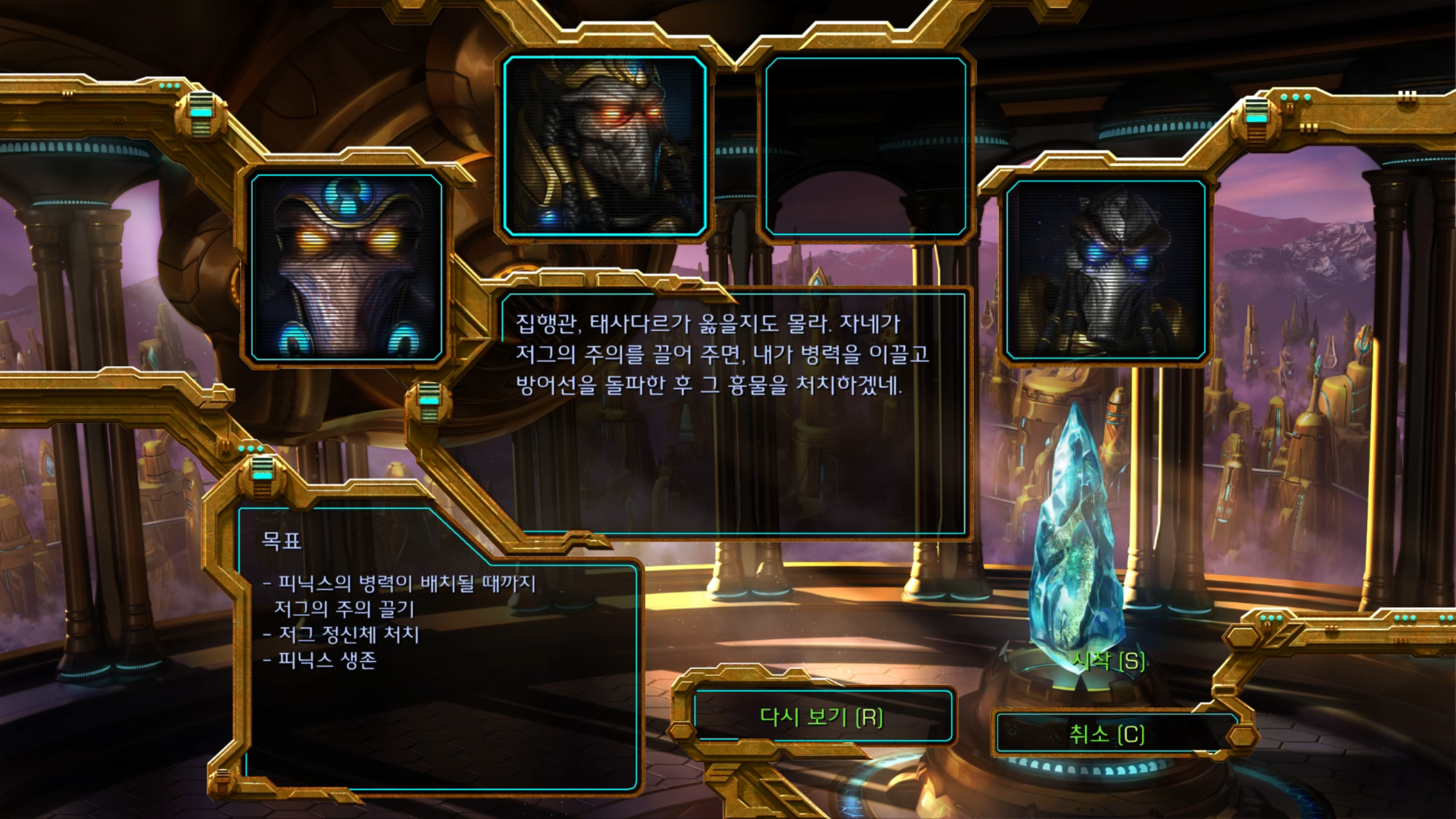 태사다르의 의견에 공감하며 저그를 공격하려는 피닉스