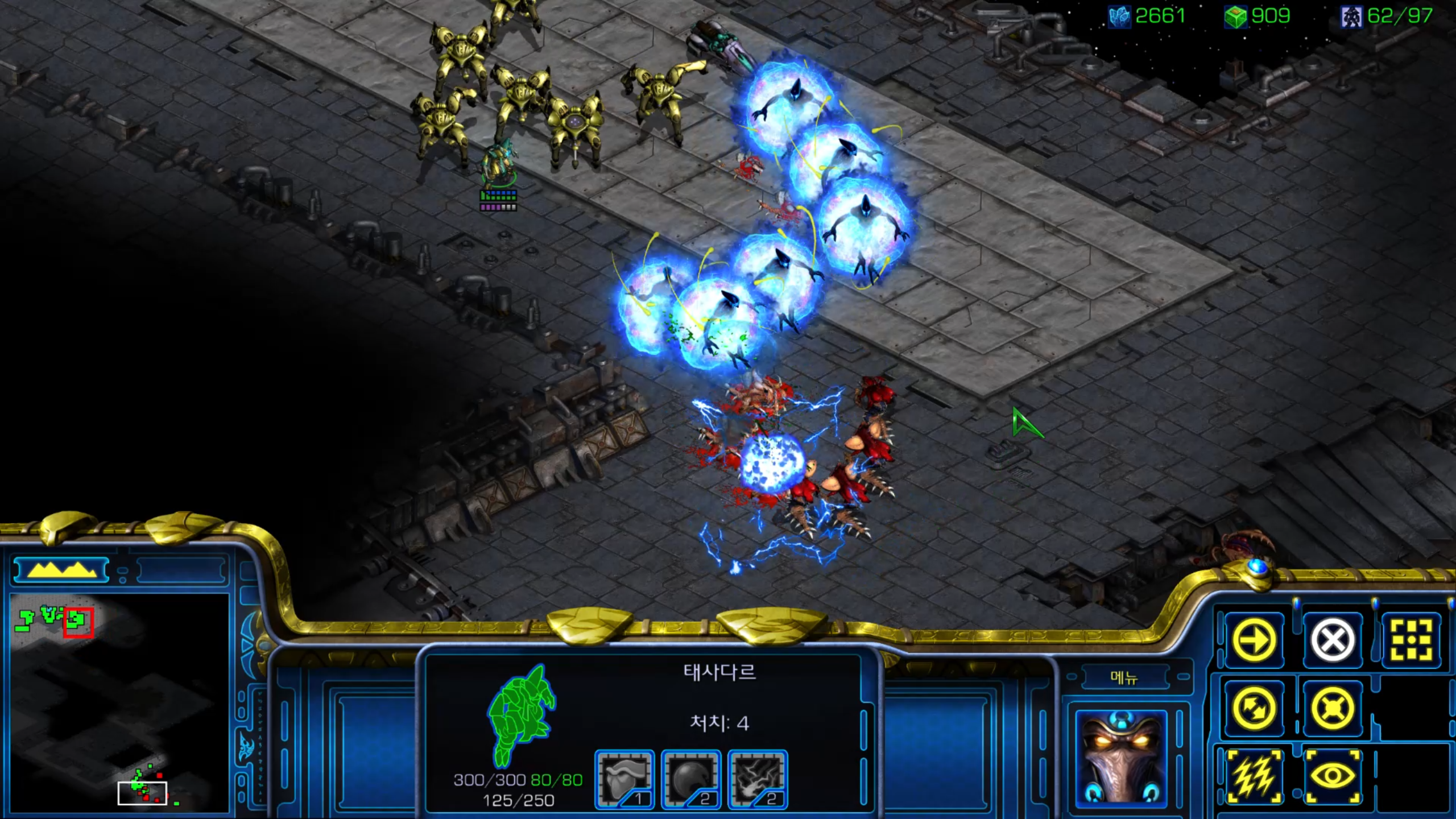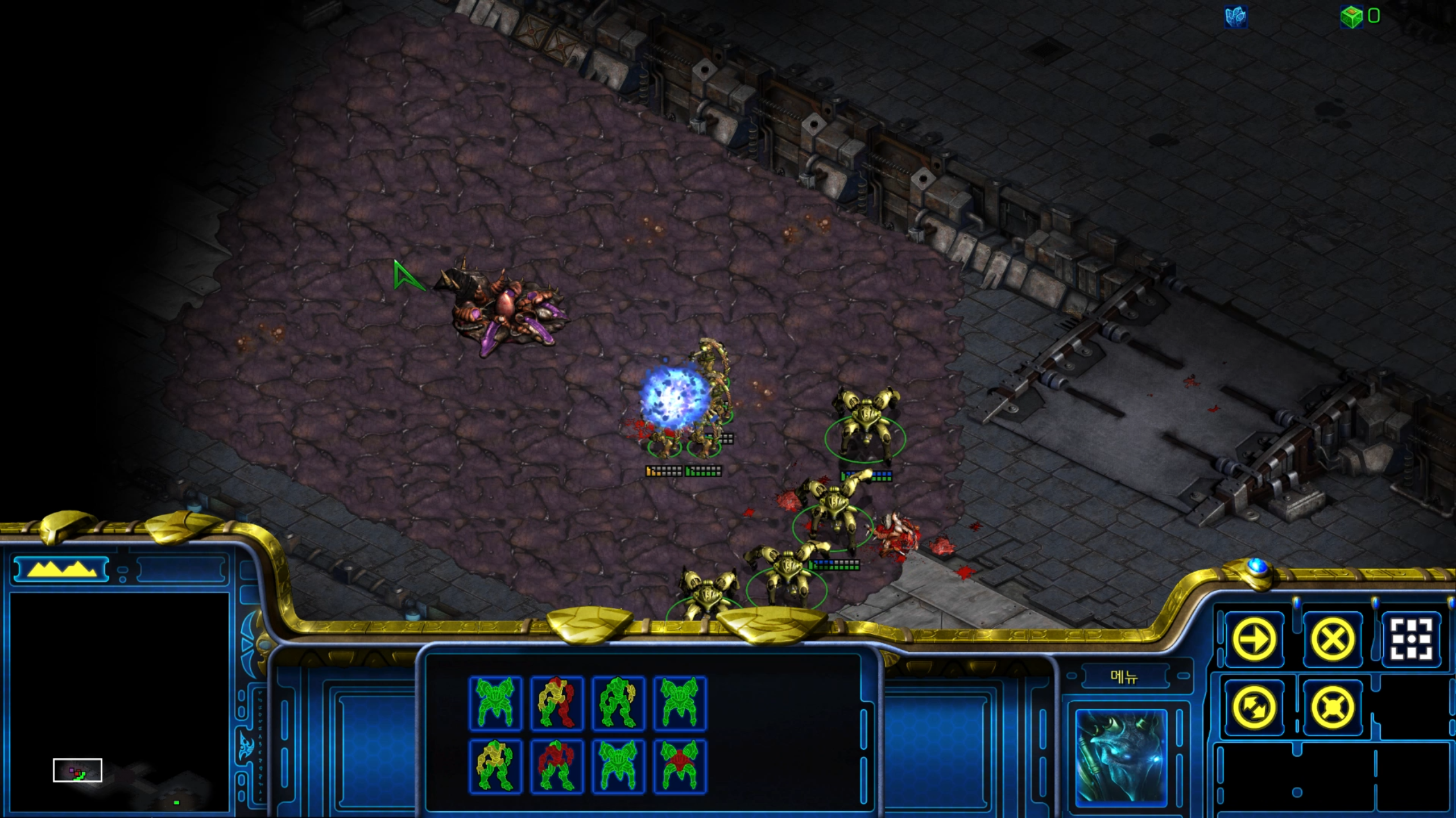 가는 길에는 당연히 저그가 있습니다. 저글링이 많으니 일단 피했다가 전기로 지져줍시다.