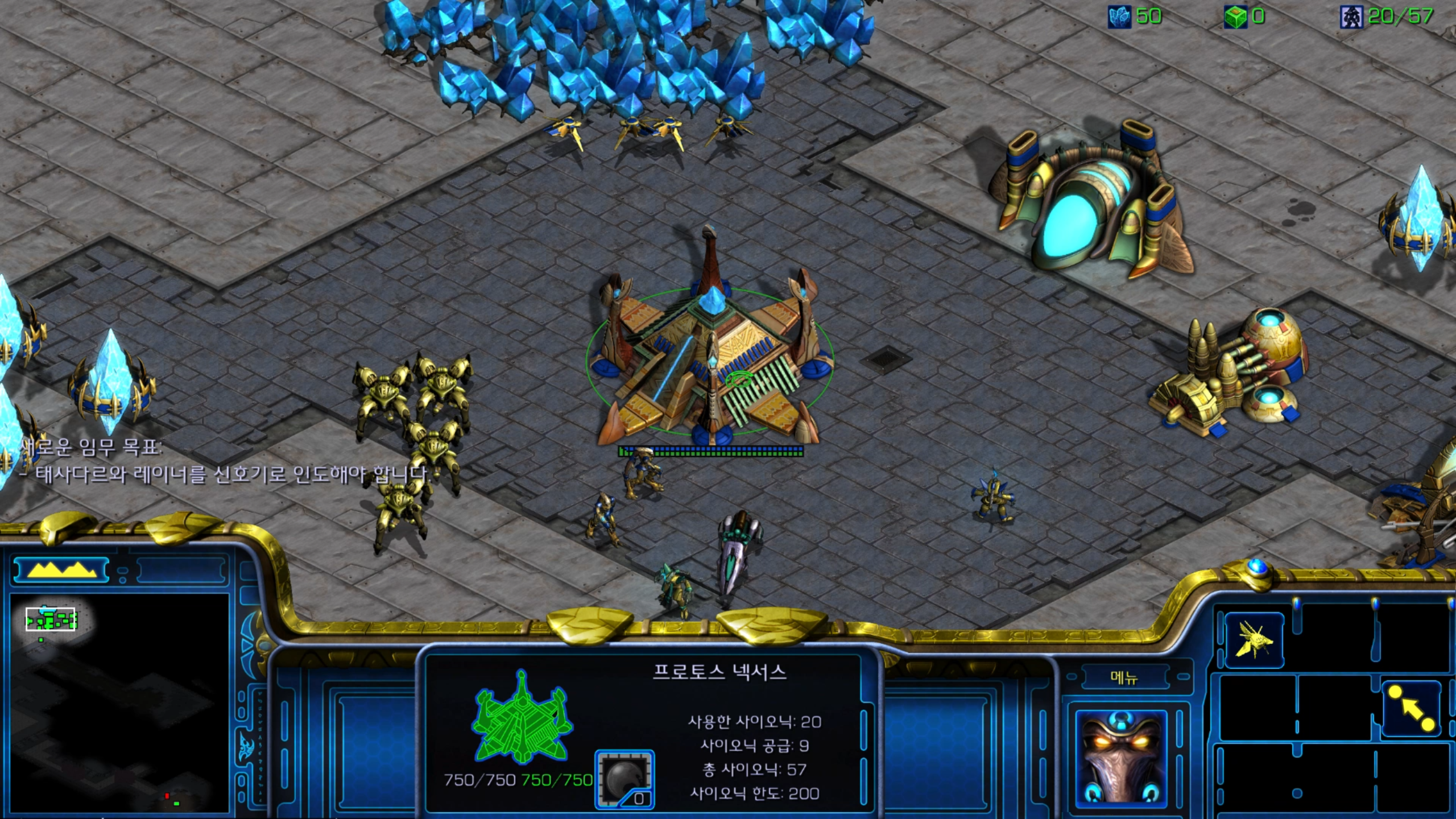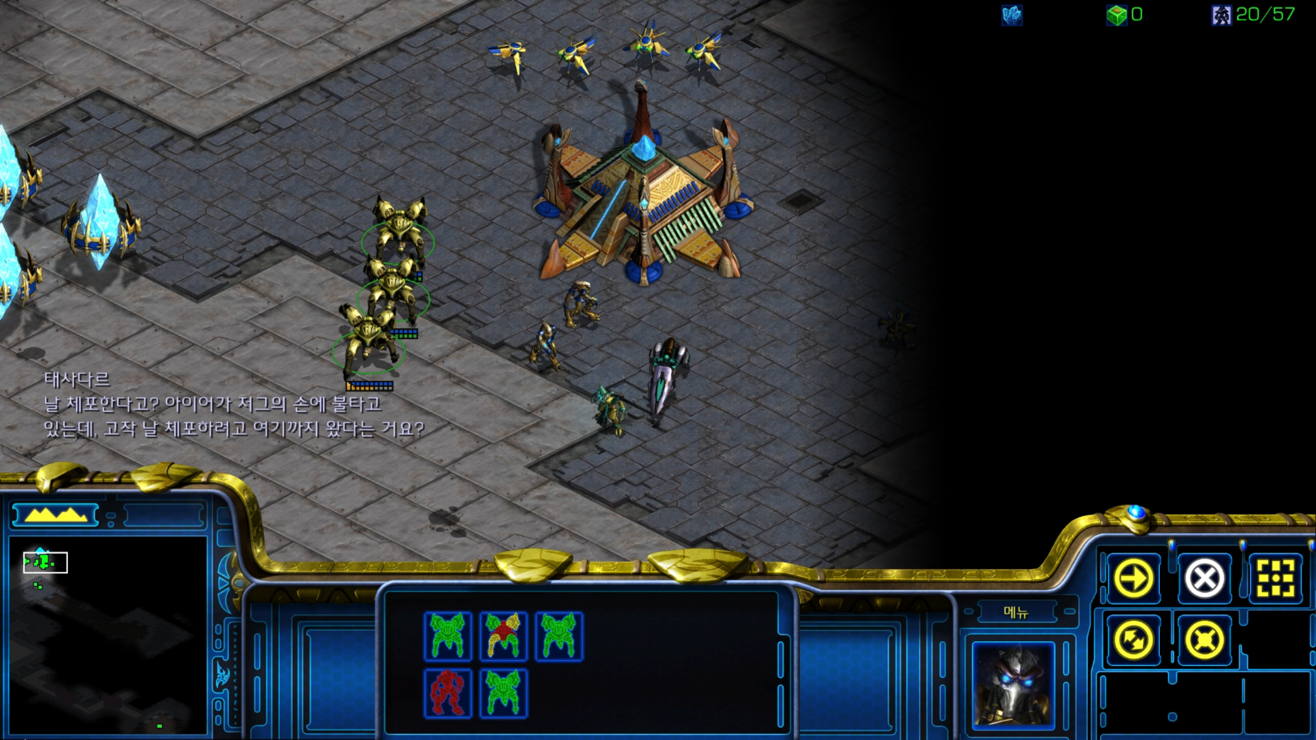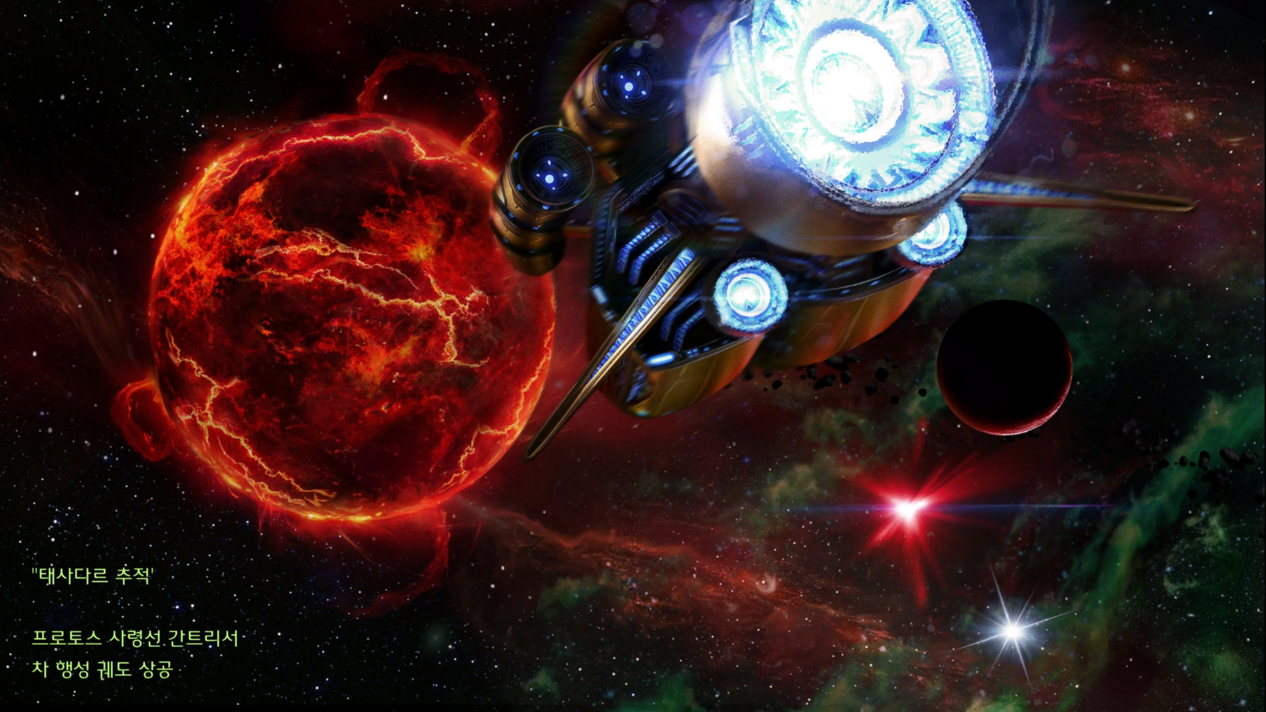 이번 미션은 차 행성 상공, 프로토스 사령선 간트리서에서 시작합니다.