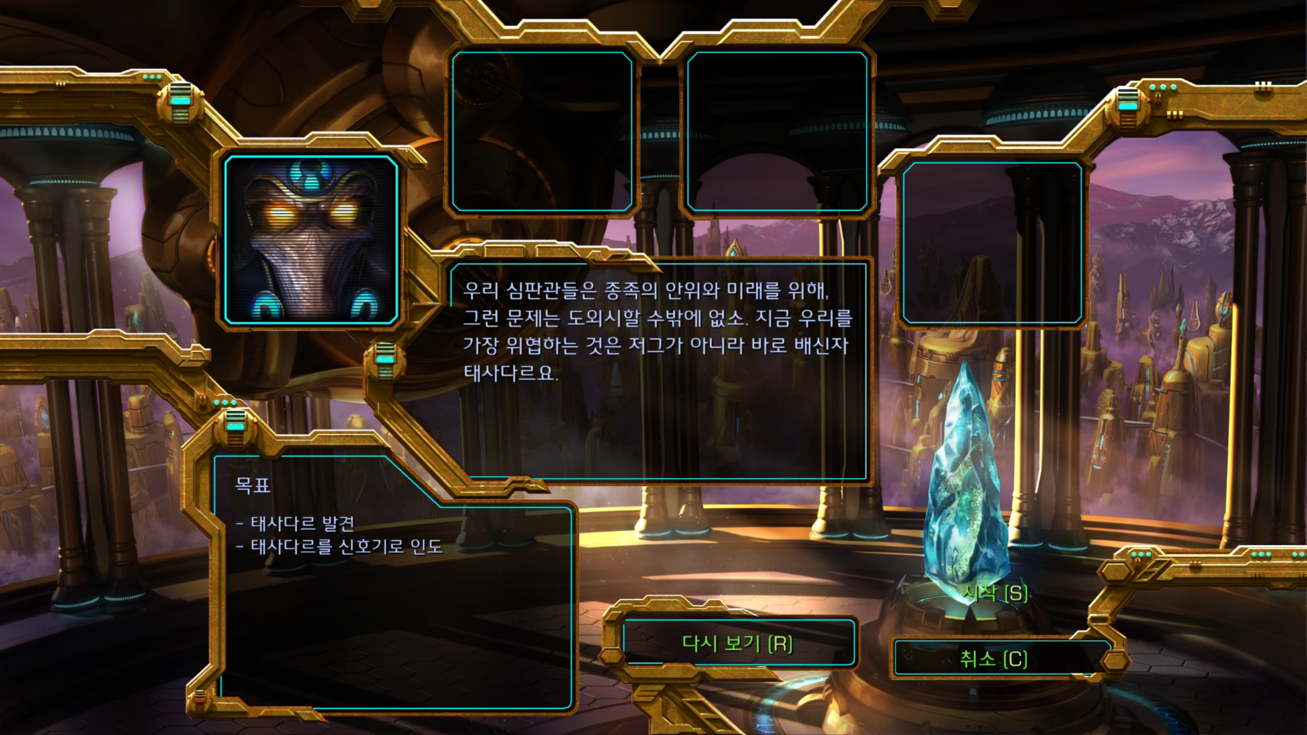 심판관 알다리스가 배신자 태사라드를 찾아낼 것을 명령받습니다. 현재의 프로토스는 저그보다는 내부의 배신자를 처단하는 게 더 중요해 보입니다.