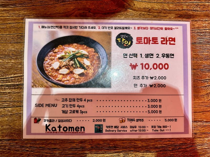 메인메뉴는 온리 토마토라면만 있는 라멘집입니다.