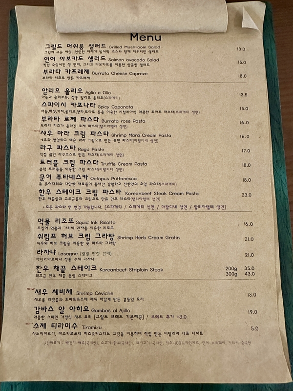 면이 특히 맛있었고 이탈리아 음식인데 집밥 먹는 느낌이 납니다.