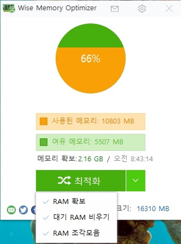 저는 와이즈메모리 옵티마이즈라는 프로그램을 썼고요.