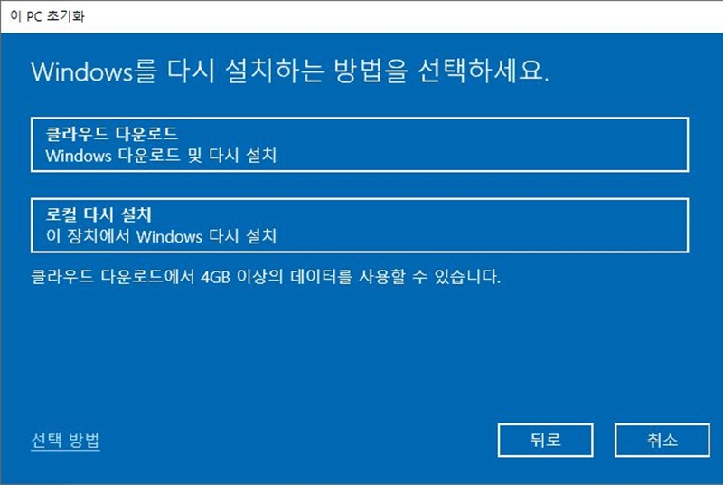 클라우드 다운로드 : 인터넷을 통해 최신 버전으로 재설치