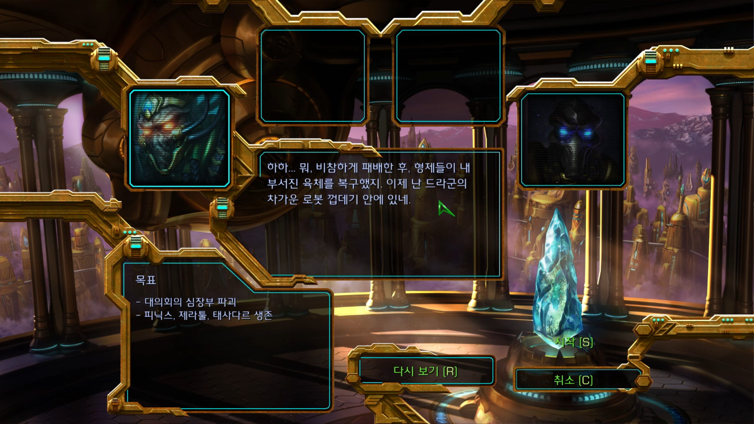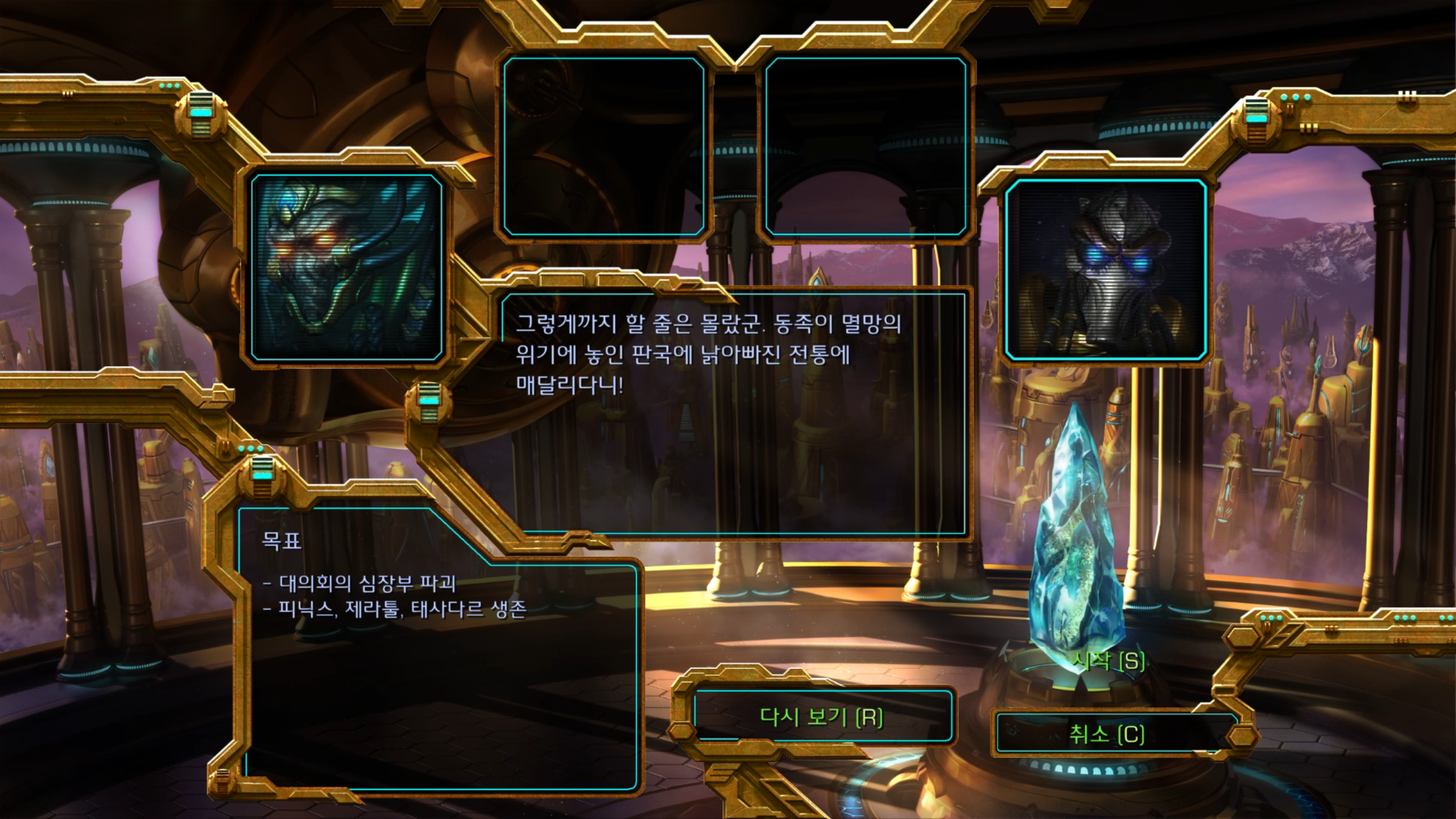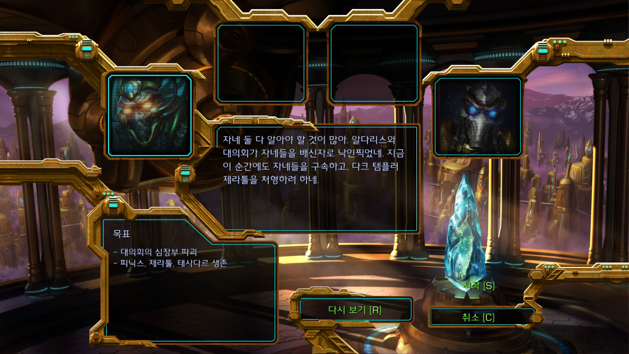 이번 미션은 차 행성에서 귀환하여 아이어 궤도 상공 프로토스 사령선 간트리서에서 시작합니다.