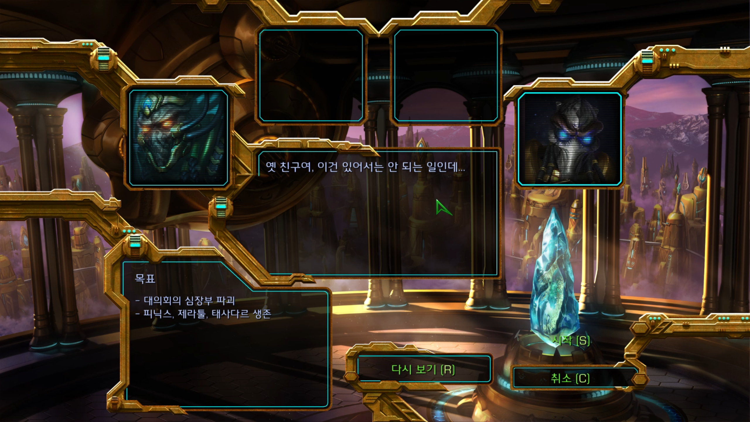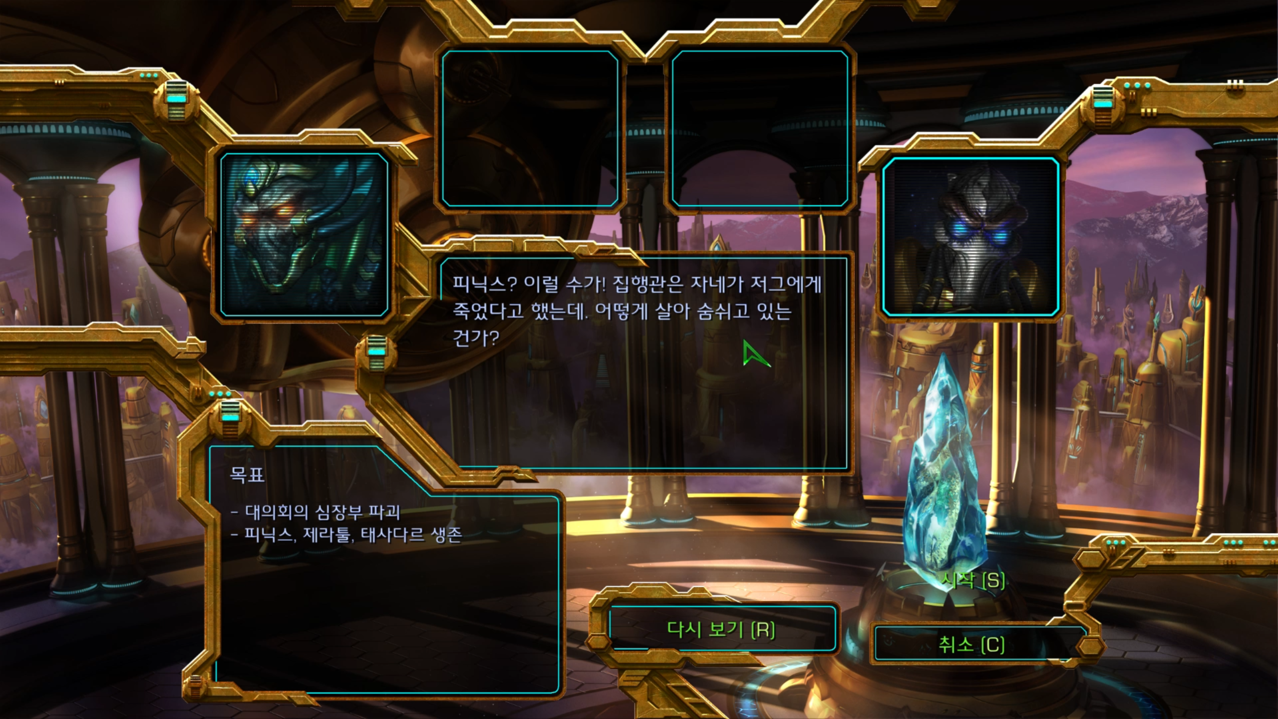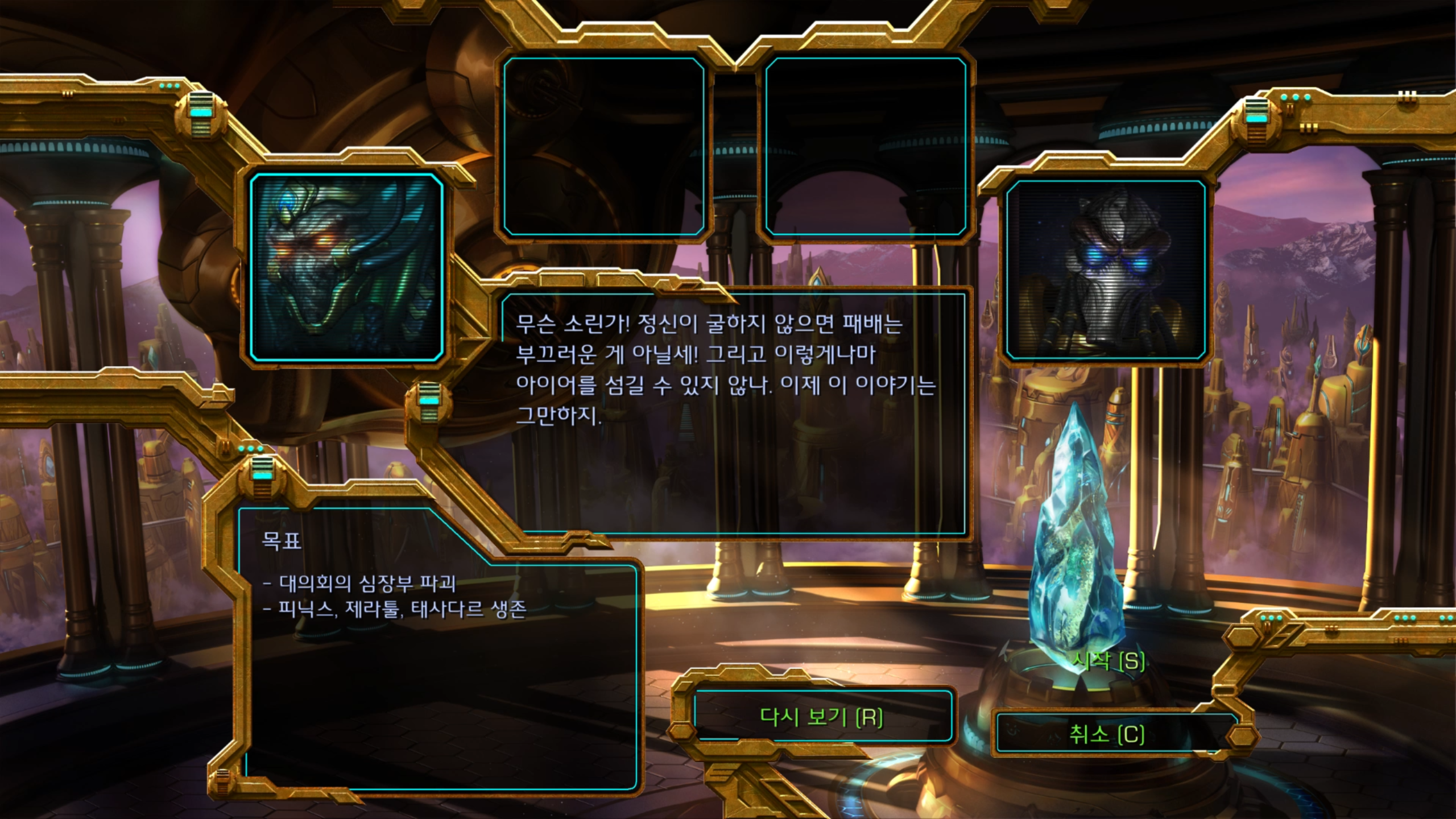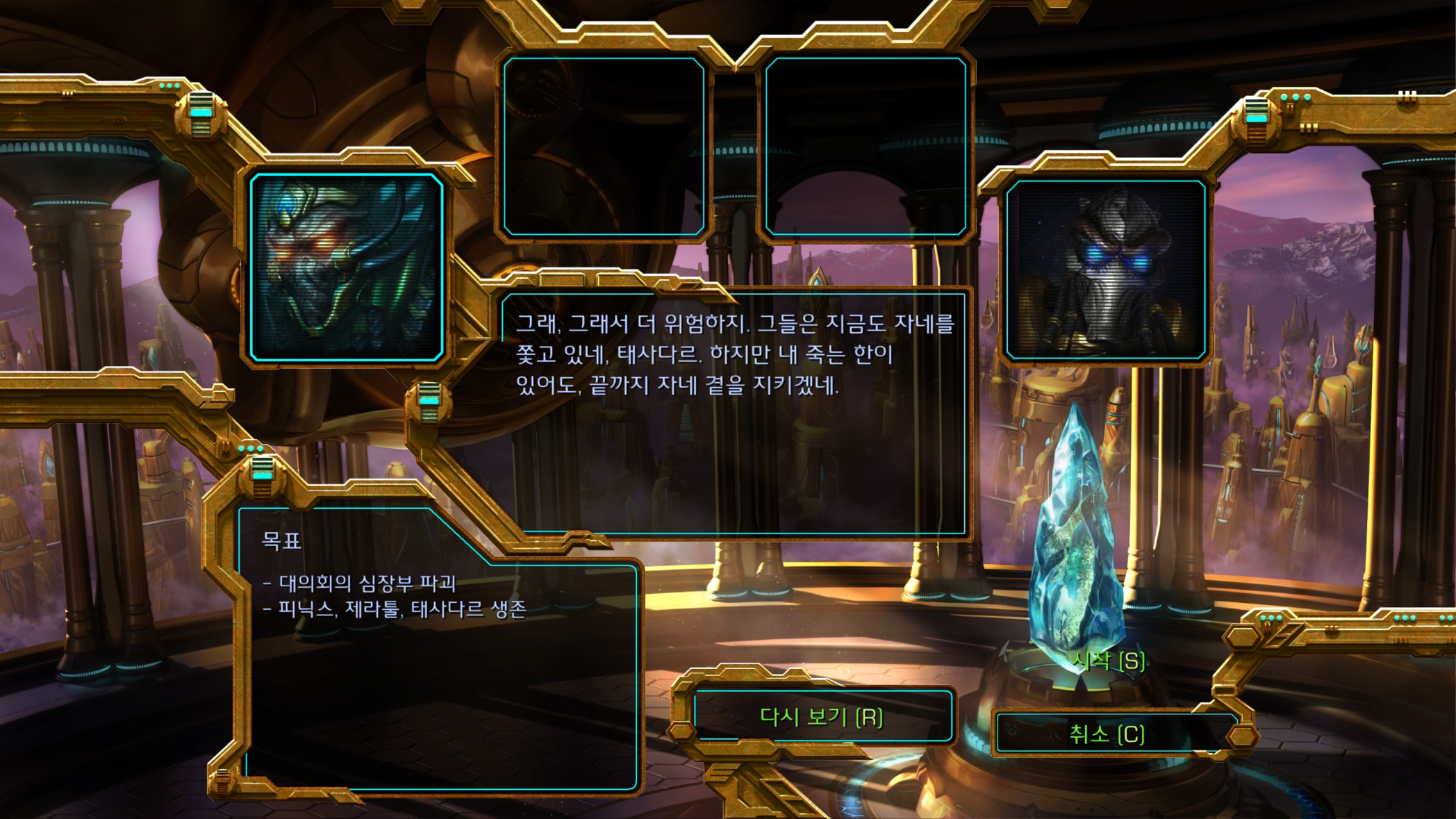 이번 미션은 차 행성에서 귀환하여 아이어 궤도 상공 프로토스 사령선 간트리서에서 시작합니다.