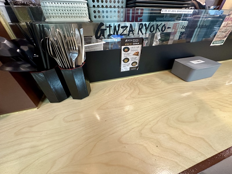 의자 밑에는 짐을 놔둘 수 있는 박스가 있는데, 이것 때문인지 의자도 높은 편이라 먹기 편한 공간은 아니었습니다.