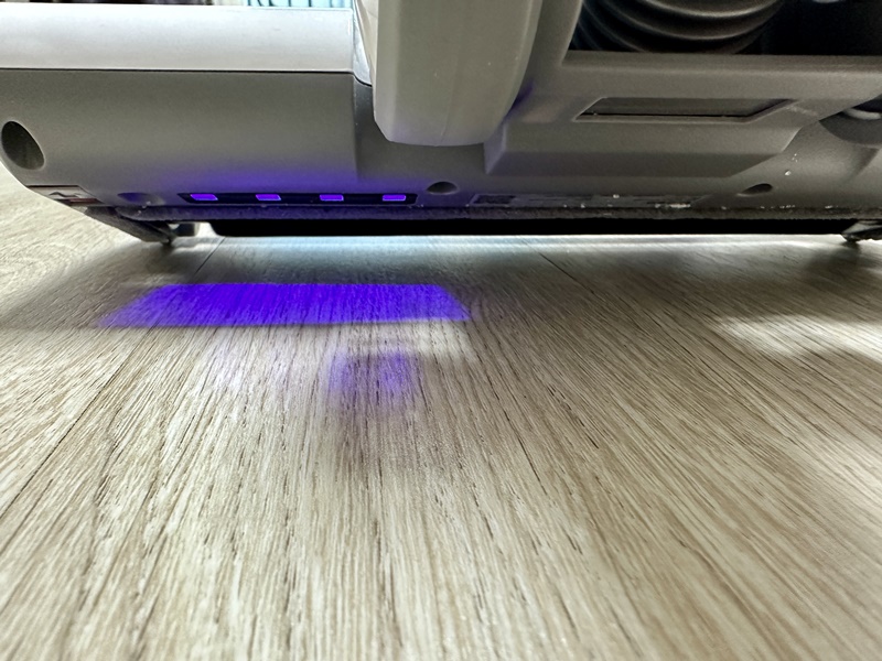 필라멘트 양 옆에 센서가 달려 있어서 바닥 면에 닿을 때만 UV가 작동하는 방식입니다.