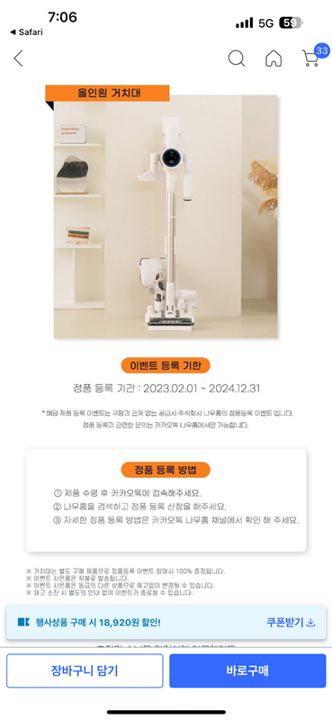 지금도 하는지 모르겠는데 구매할 당시 정품등록 하면 거치대를 주는 이벤트가 있었어요.