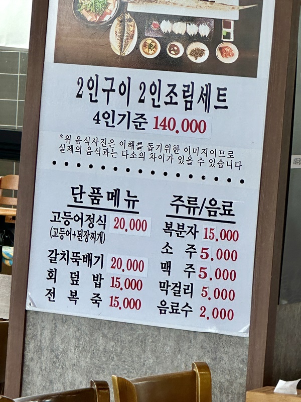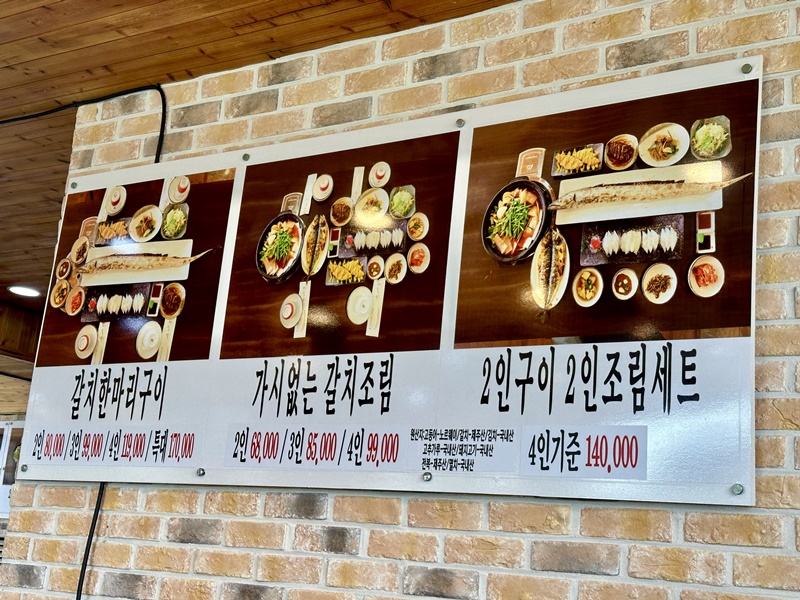 메인 메뉴는 갈치구이, 조림, 그리고 구이와 조림 세트가 메인입니다.