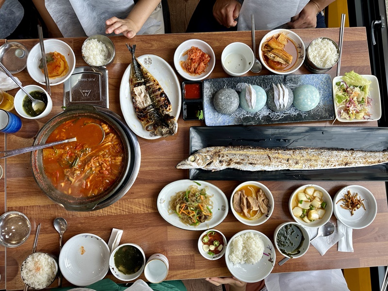 갈치조림을 메인으로 먹다가 잘 구워져서 기름을 가득 품은 고등어구이 한 번씩 먹어 주고, 갈치구이에 와사비 간장 찍어 먹어 주면 밥 한 공기 순삭합니다.