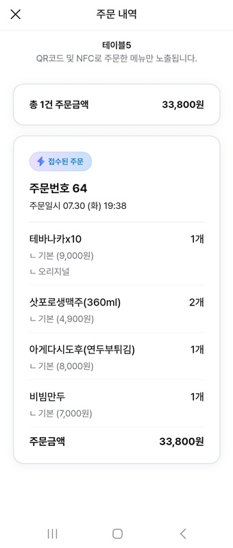핸드폰으로 QR을 찍으면 메뉴판을 볼 수 있으면서 주문도 할 수 있는 편리한 시스템입니다.