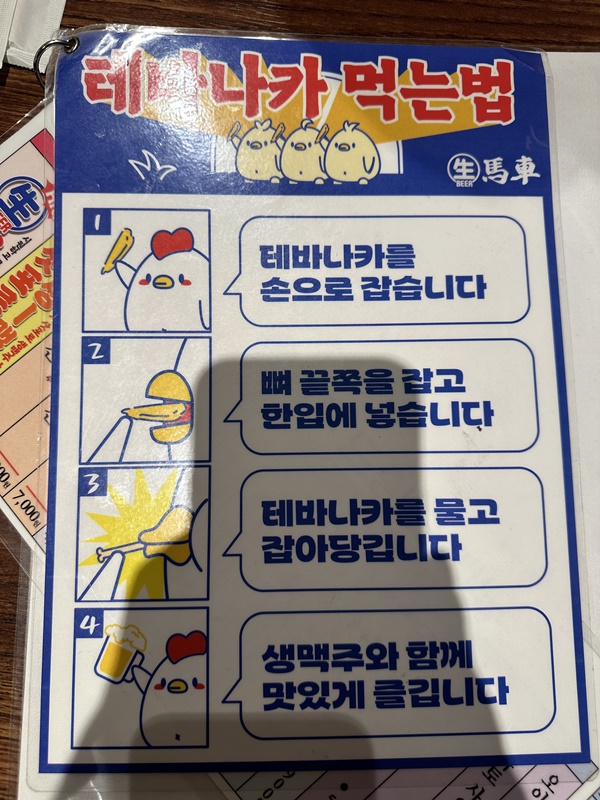 메인 메뉴다 보니 먹는 법도 나와 있습니다. 손으로 편하게 먹으라고 비닐을 주시는데 실제로는 젓가락으로 집어 먹었다는;;