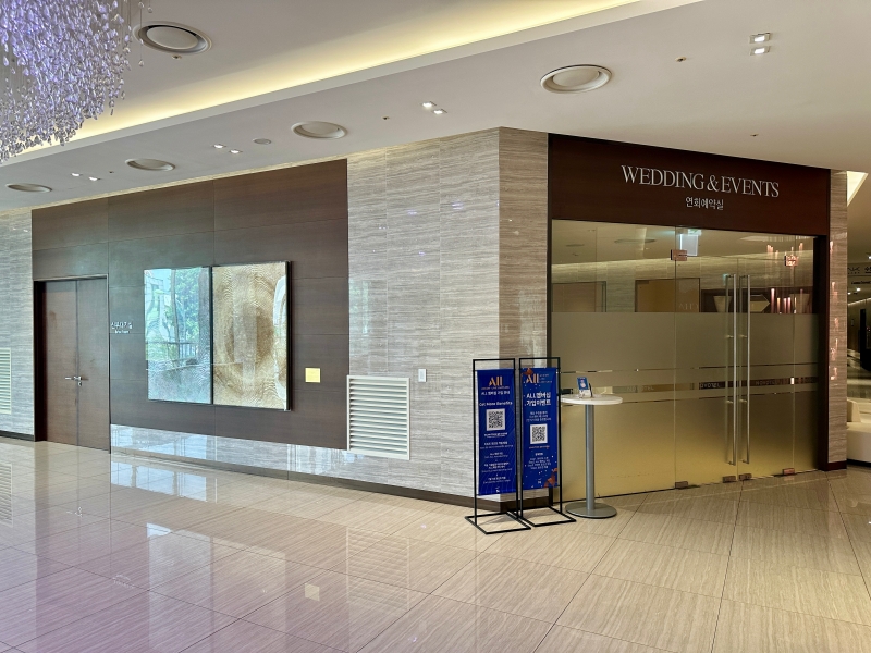 웨딩홀 오른편을 보면 AK플라자로 이어지는 복도가 나옵니다.