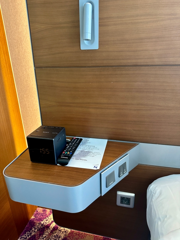 침대 옆에는 조명 버튼이 달려 있어 편했고, 충전 플러그도 양 옆에 달려 있어서 편했습니다.