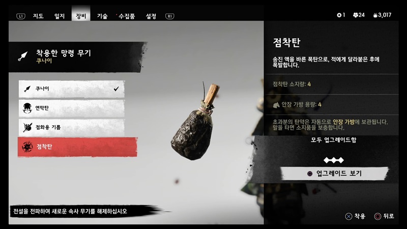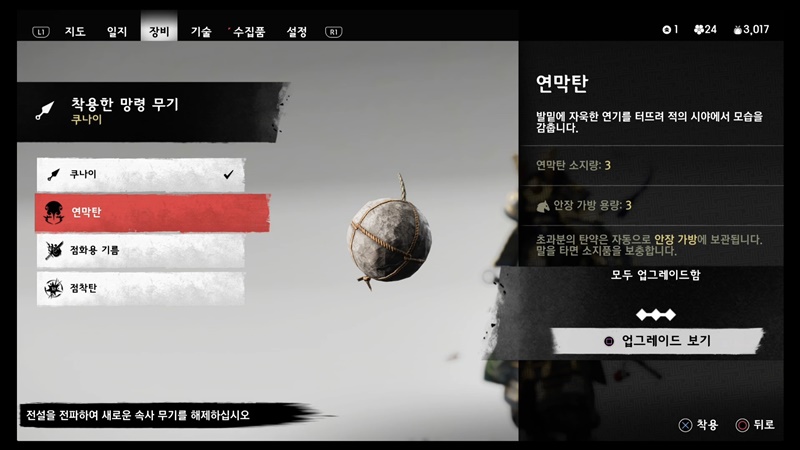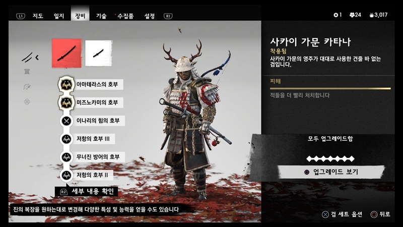 업그레이드 순서는 카타나 > 단도 > 장비 순으로 추천드립니다.