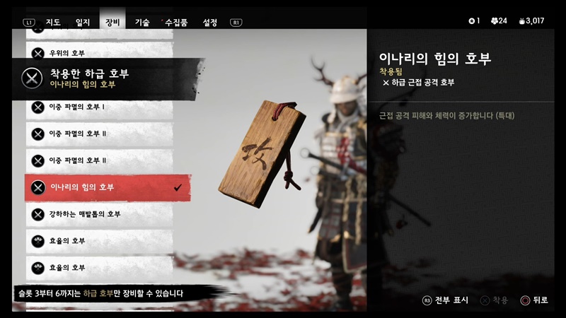 호부의 조합은 전적으로 개인의 취향이기 때문에 따로 추천드릴 건 없고 저는 해당 초중반에 해당 호부로 세팅해서 한 번도 안 바꾸고 엔딩까지 갔습니다.