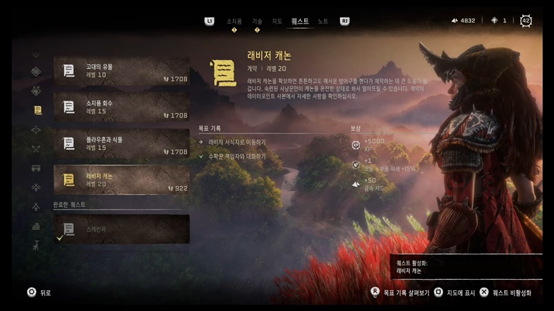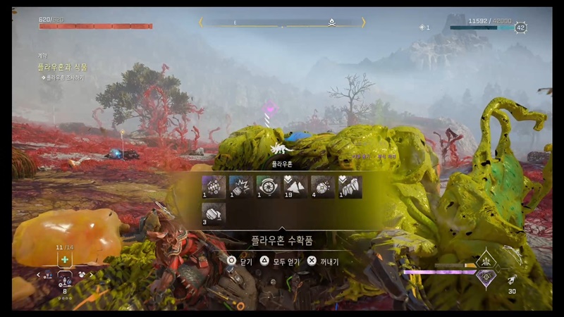[호라이즌 포비든 웨스트] 수확품 계약 8,9,10,11. 플라우혼과 식물&고대의 유물&소지품 회수&래비저 캐논