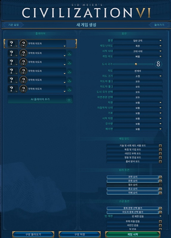 게임 안 한 사이에 문명이 엄청나게 많이 생겼네요;;;