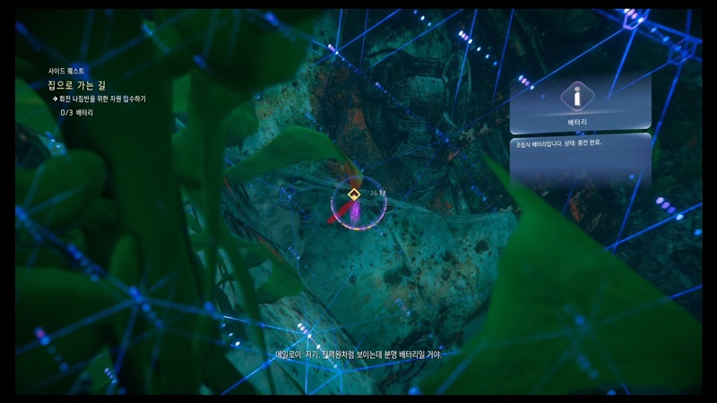 포커스를 켜서 주변을 조사해서 배터리를 찾습니다.
