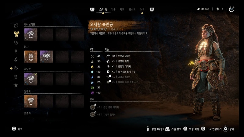 대화를 마치면 전설 등급 방어구인 오세람 숙련공을 얻을 수 있습니다.