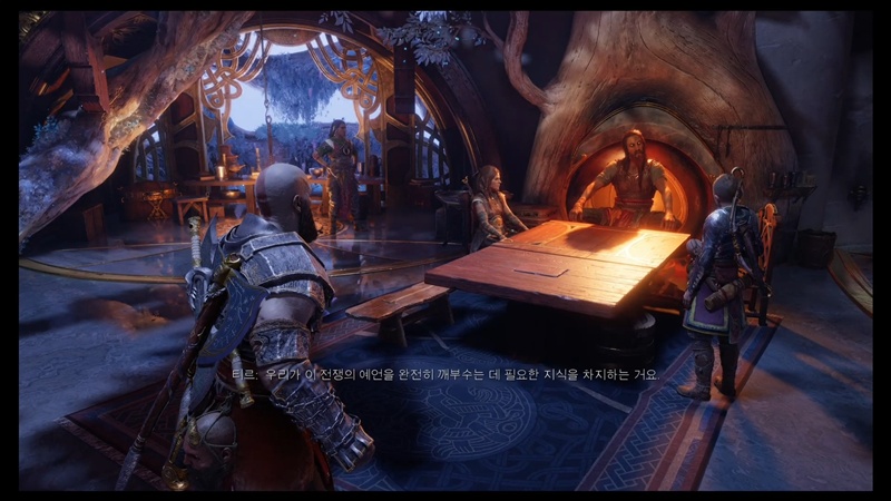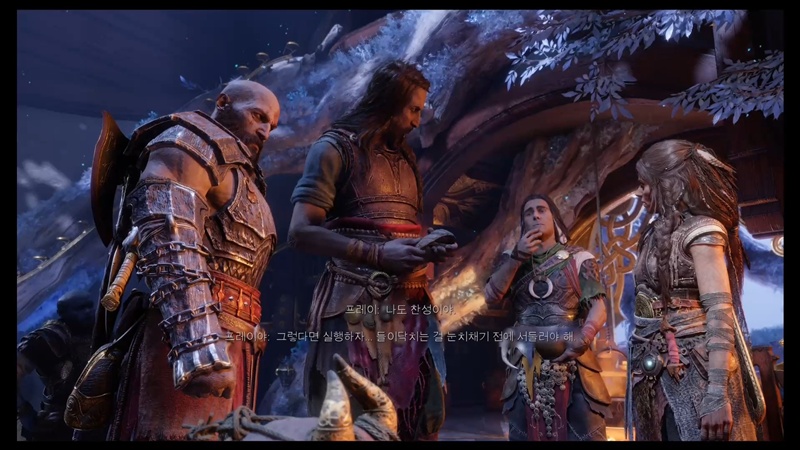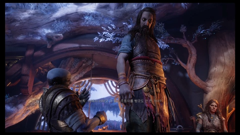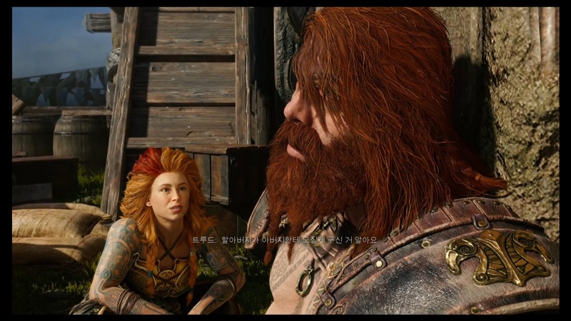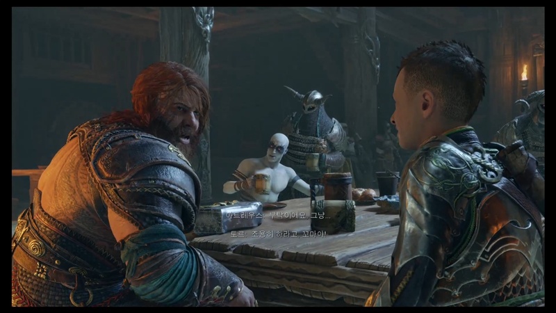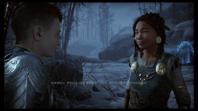 헤임달의 죽음에 아트레우스를 의심하는 시프와 아트레우스를 쉴드쳐주는 트루드.