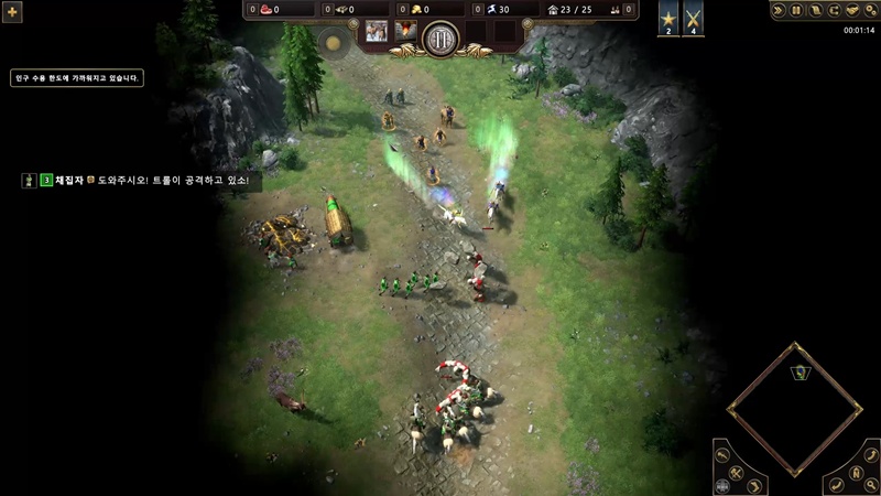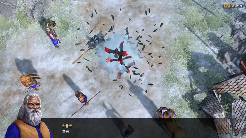 게임이 시작하자마자 노르드인들이 트롤들에게 공격당하고 있습니다.