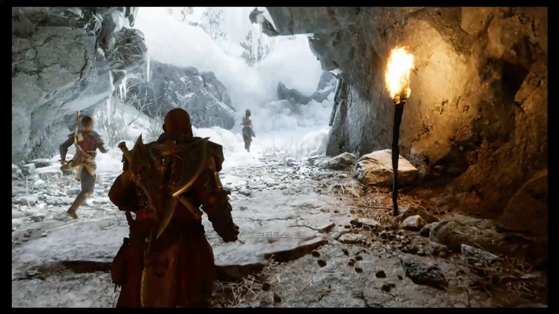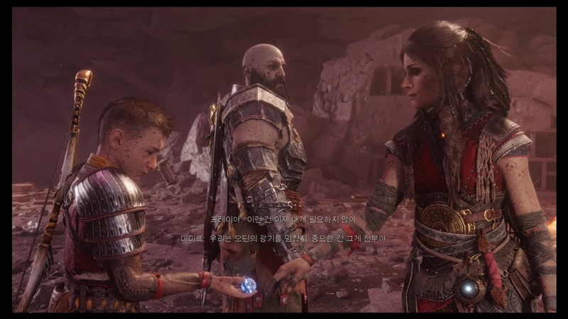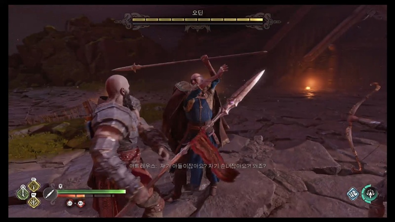 아래로 떨어진 아트레우스 앞에 균열과 오딘이 등장합니다.