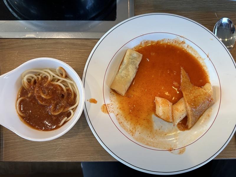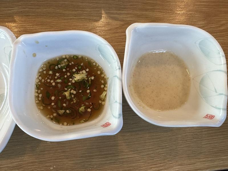 소스는 간장, 땅콩, 칠리 세 종류가 제공되는데, 간장과 땅콩은 기본으로 제공되며 칠리 소스는 샐러드 바에서 가져왔습니다.
