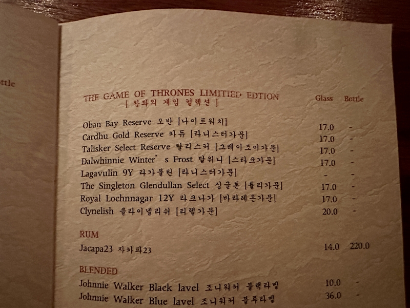술 종류도 엄청 많은데, 모르는 술도 많고 조예가 없기 때문에 소개는 패스하도록 하겠습니다.