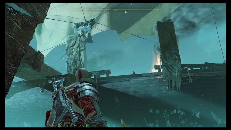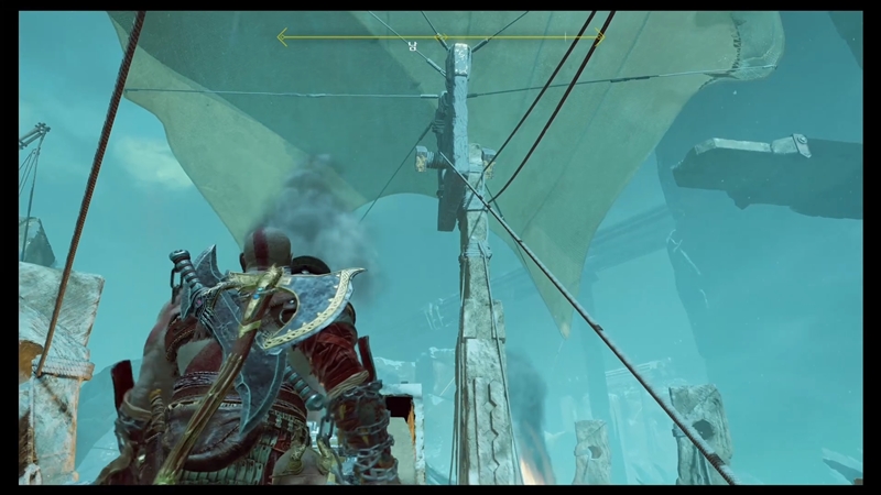 혼돈의 블레이드를 이용해 불을 통한 바람을 만들어 배를 움직이는 크레토스.
