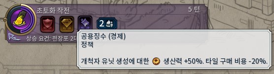 다음으로 공용징수라는 괜찮은 정책카드와 사절 2개를 주는 초토화 작전 찍겠습니다.